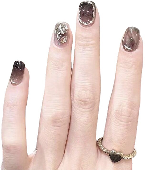 纯手工光疗穿戴甲 香槟水晶成品重复使用美甲贴片