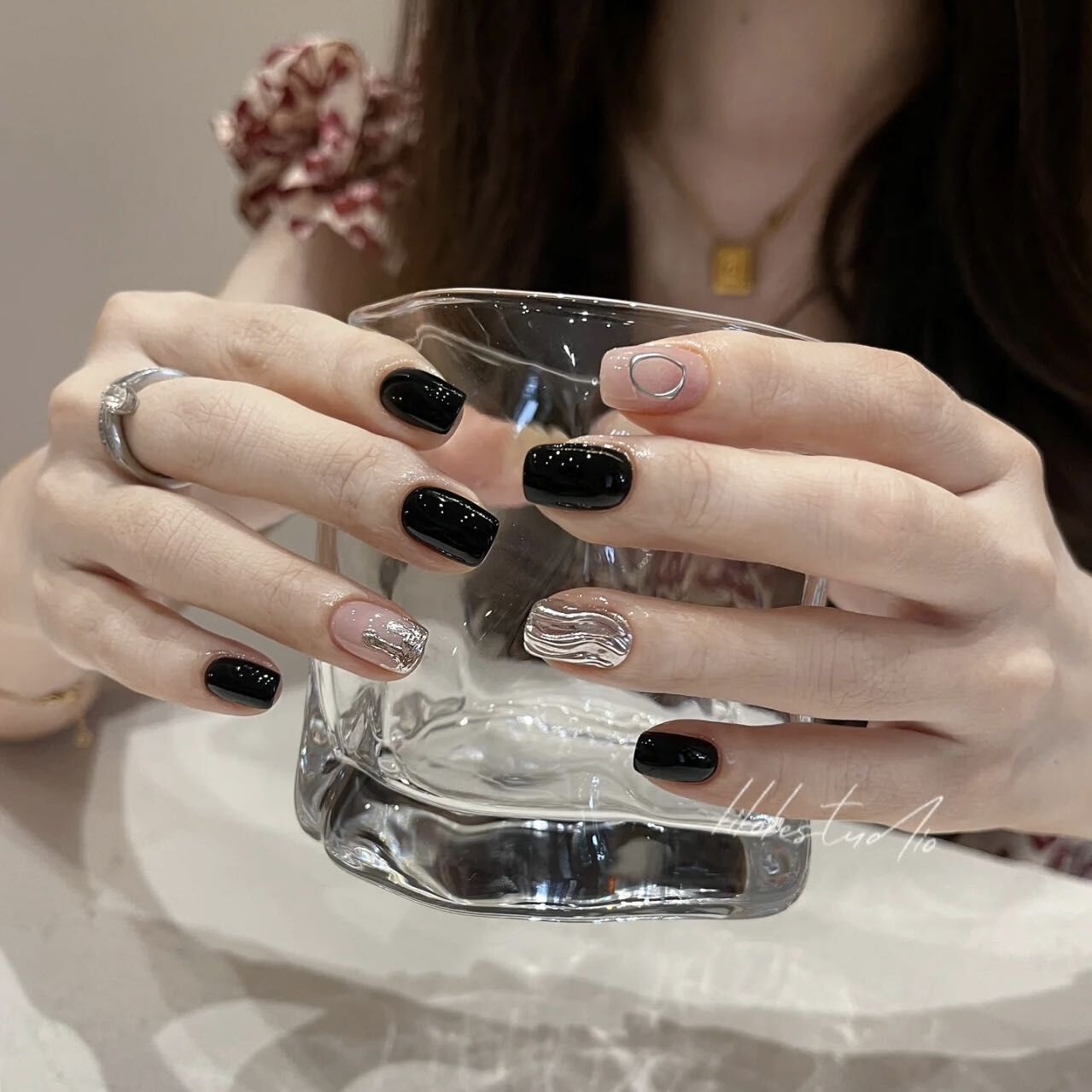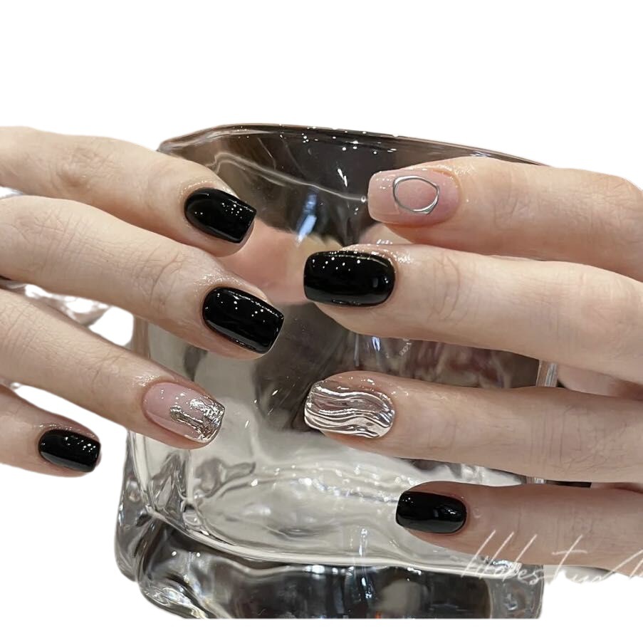 纯手工光疗穿戴甲尘封的爱成品美甲贴片可拆卸黑色暗黑