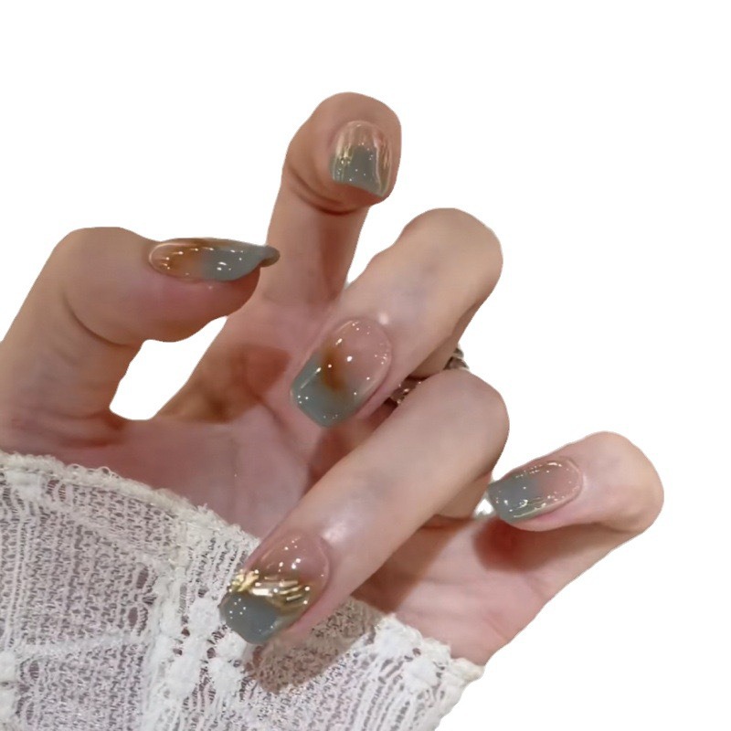 【迷雾森林】纯手工穿戴甲美甲琥珀焦糖渐变香槟钻新年美甲