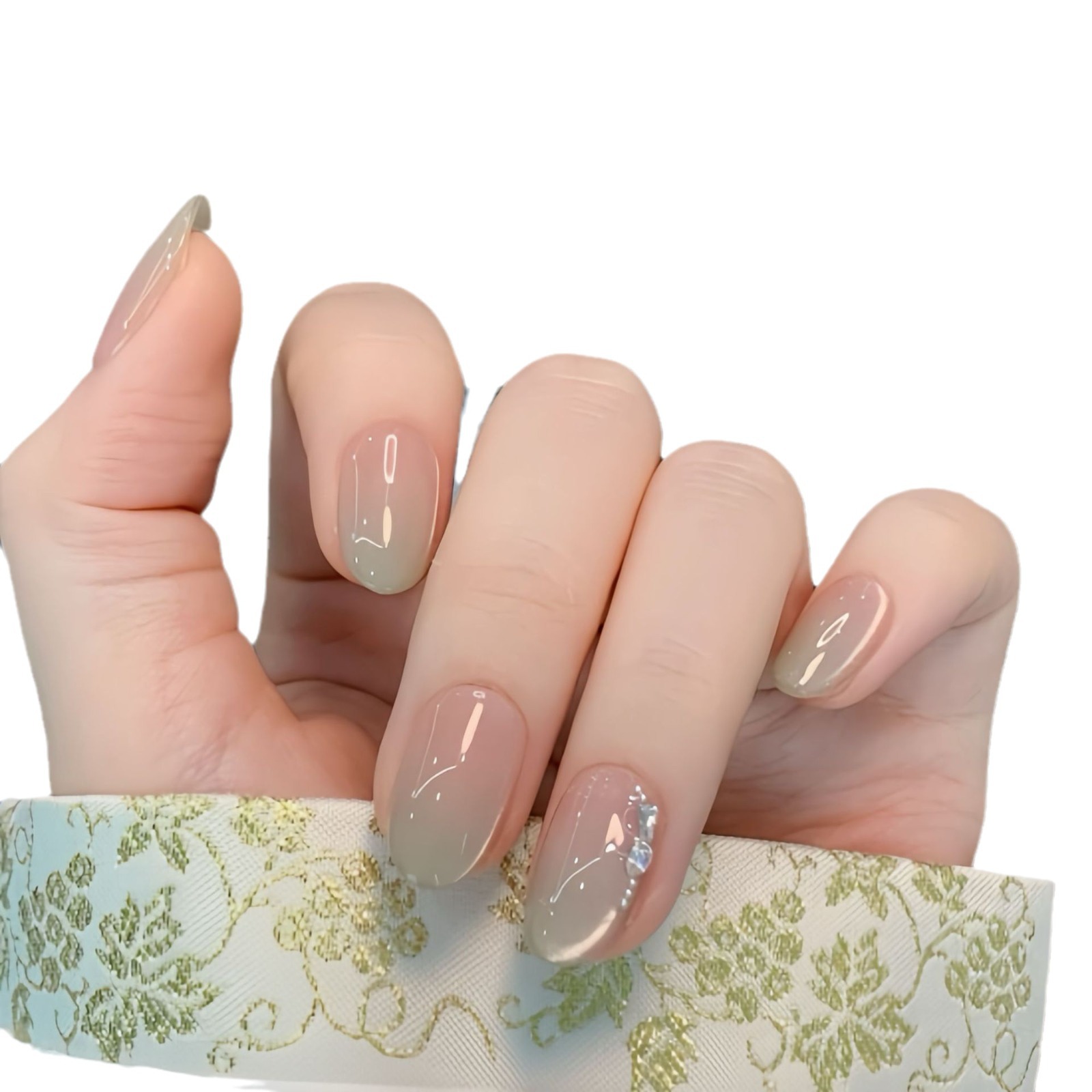 【茉莉奶绿】纯手工穿戴甲显白气质侧光猫眼可拆卸可重复使用