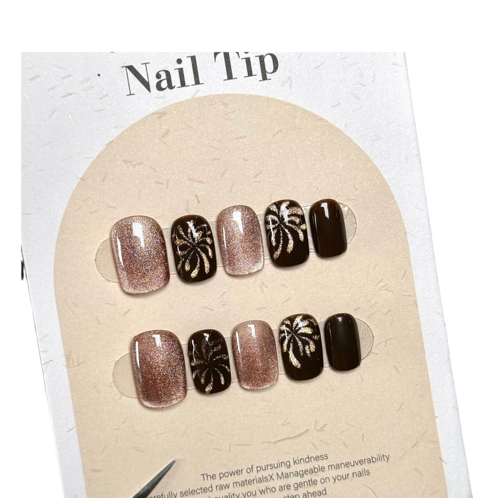 【指尖烟花】纯手工穿戴甲片美拉德纸醉金迷金棕色新年款短款猫眼