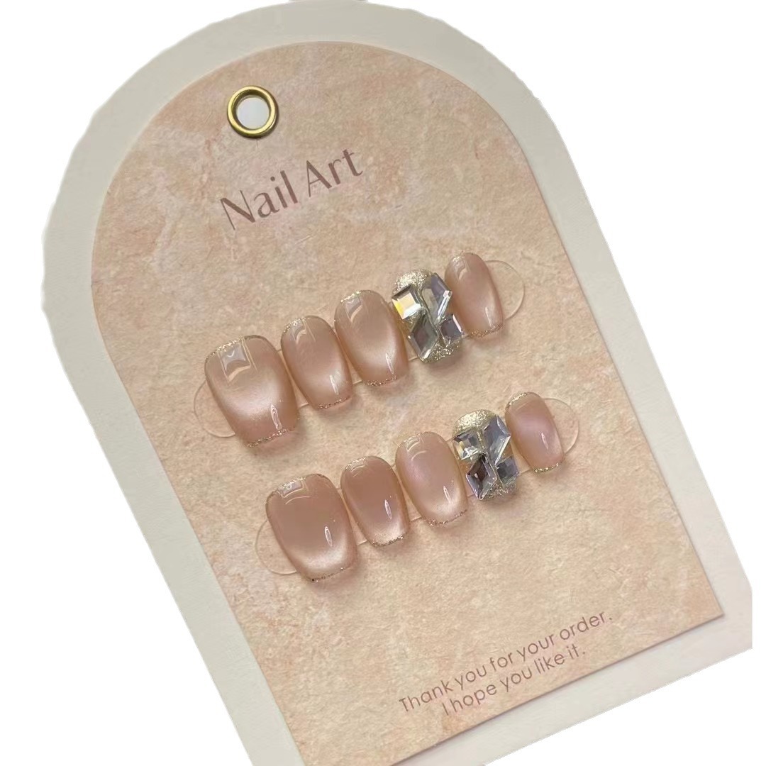 【冰茶粉柚】纯手工穿戴甲短款猫眼新款高级感显白美甲
