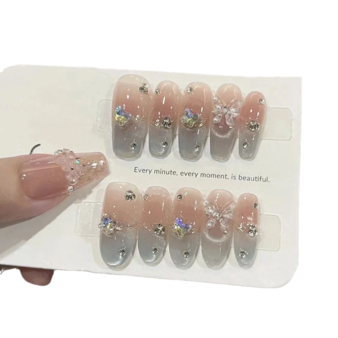 假日舞会 纯手工穿戴甲腮红氛围感法式蝴蝶轻奢可拆卸可重复使用