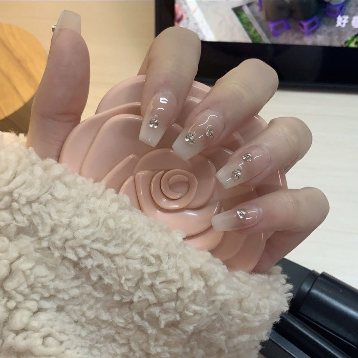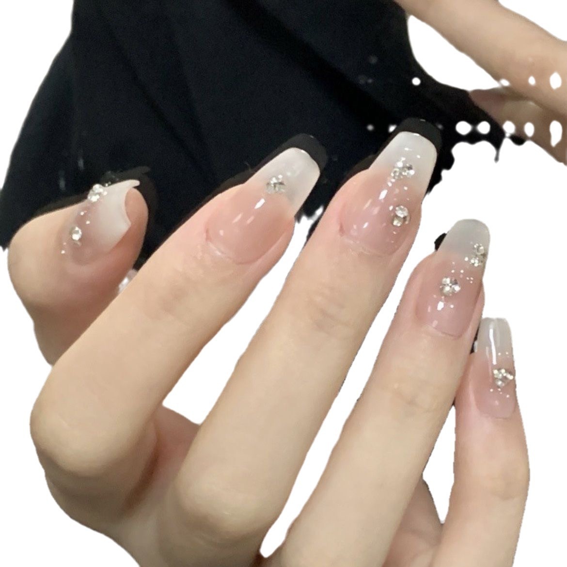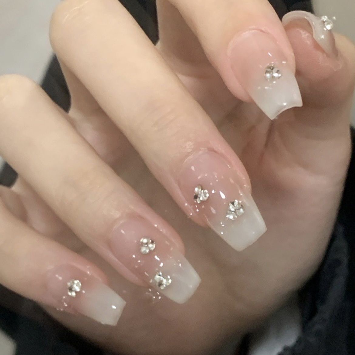 纯手工穿戴美甲显白气质美甲贴成品乳白渐变堆钻光疗手工新娘美甲