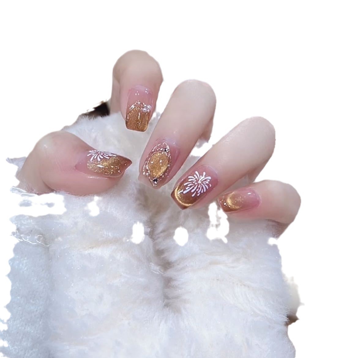 【烟花】手工穿戴甲美甲贴 金色猫眼显白爆闪百搭假指甲成品