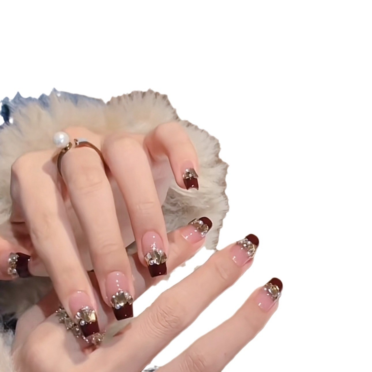 【千禧】纯手工穿戴甲显白气质秋冬法式贴钻新年高级感成品美甲