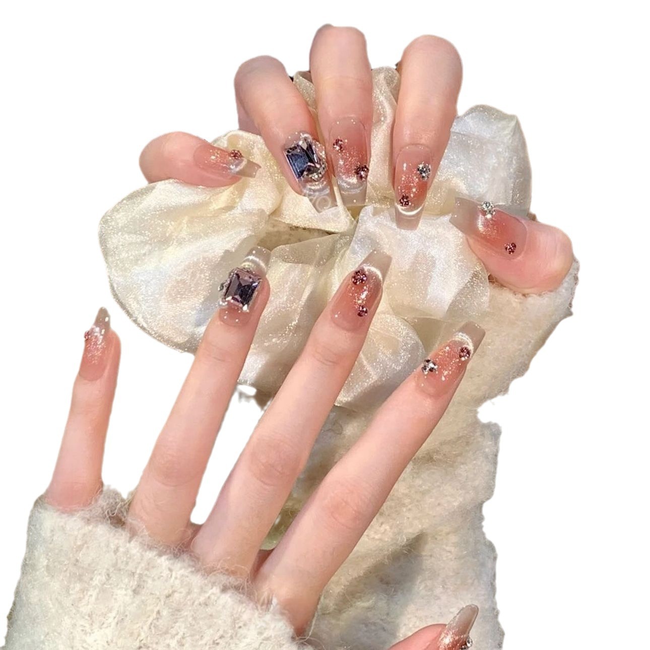 纯手工穿戴甲冰糖多巴胺甜心温柔猫眼心愿法式简约假指甲贴美甲