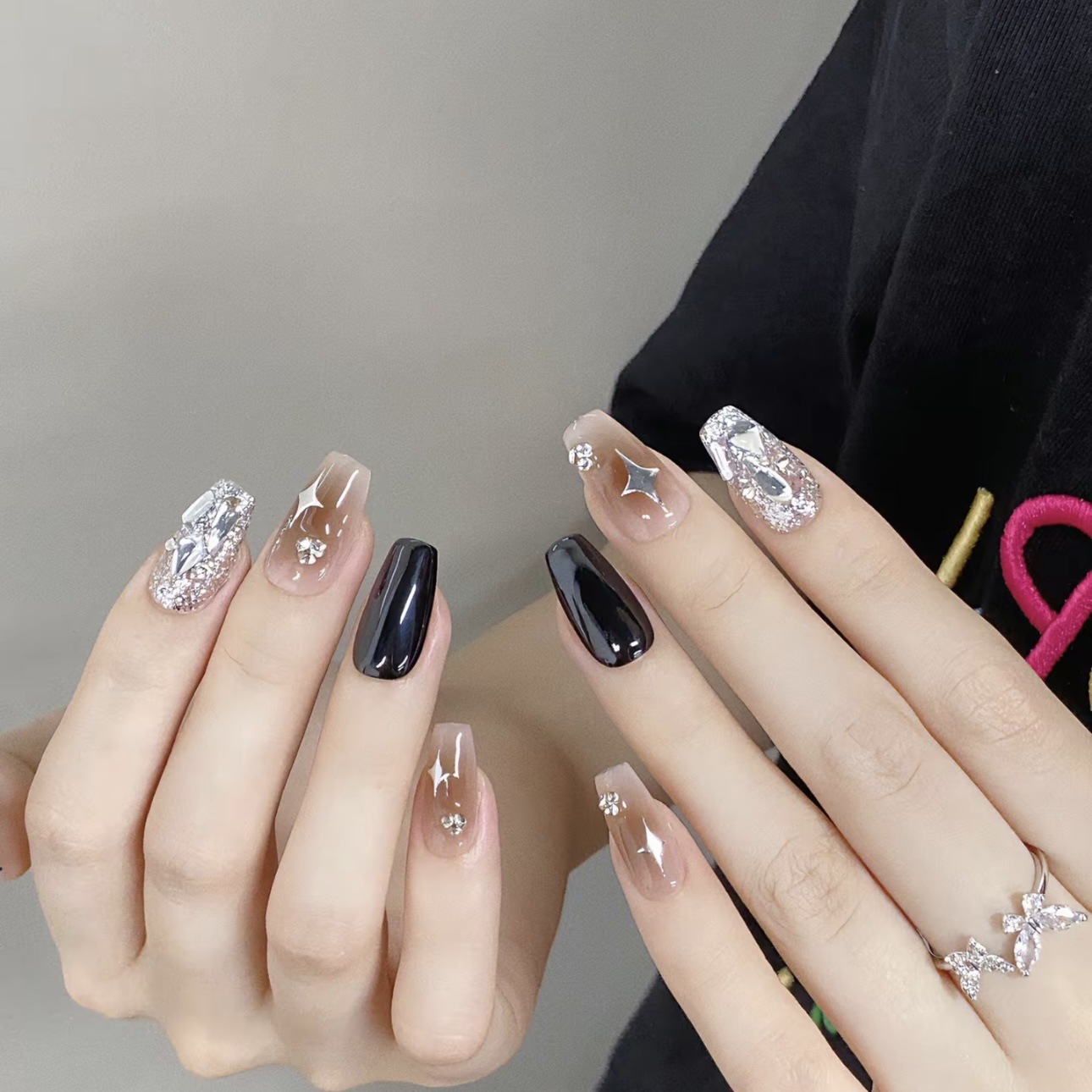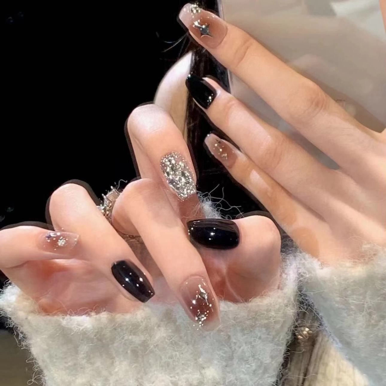 【黑色星空】腮棕星芒新款甜酷短款黑色爆闪y2k手工穿戴甲