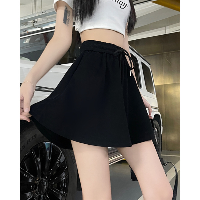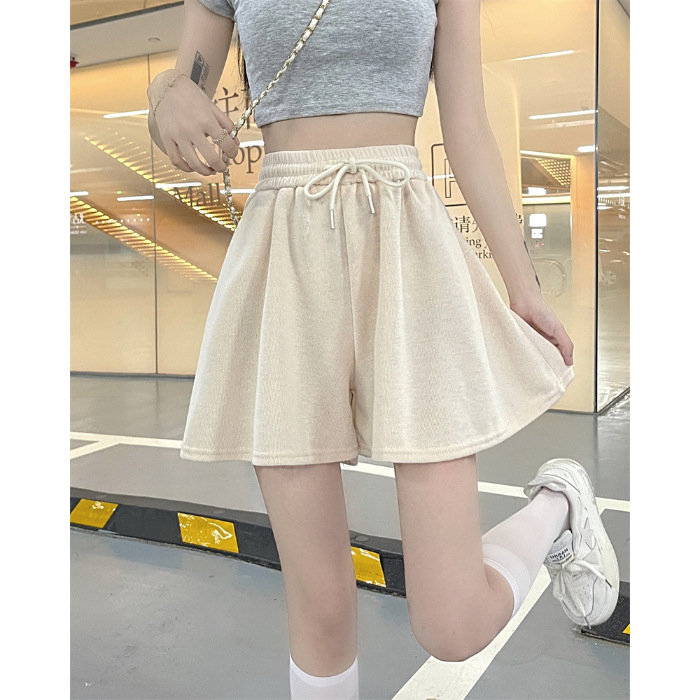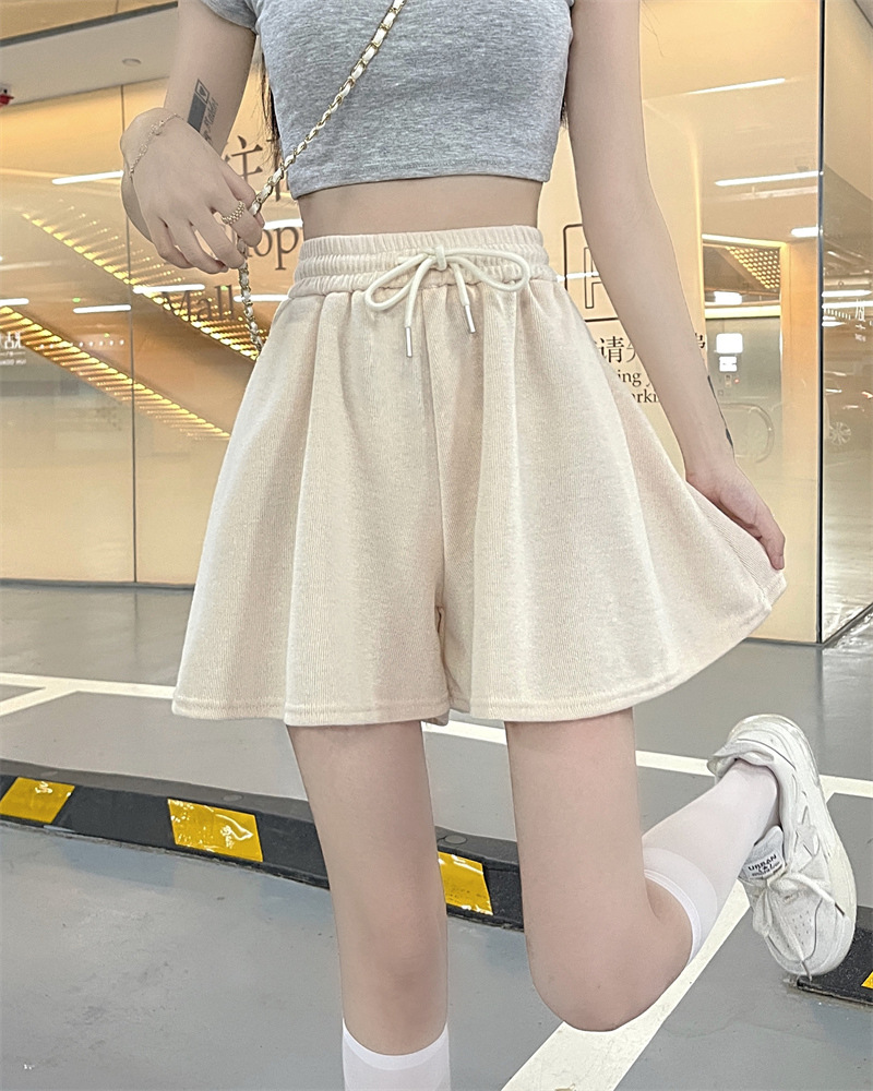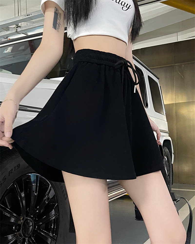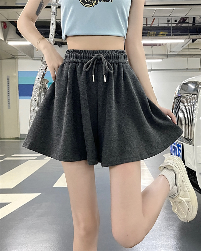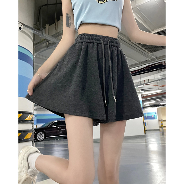 小个子夏季高级灰高腰显瘦短裤女宽松垂感阔腿裤松紧腰休闲裤裙薄