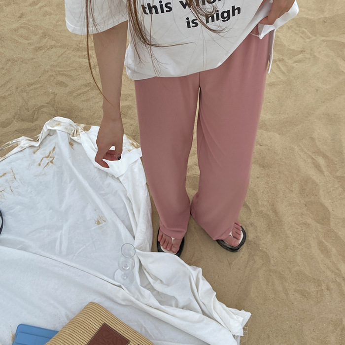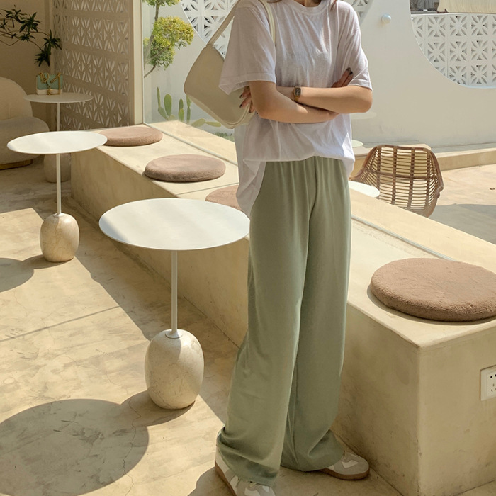 韩版新款高腰垂感休闲阔腿裤小个子纸筒拖地长裤春夏秋季可穿