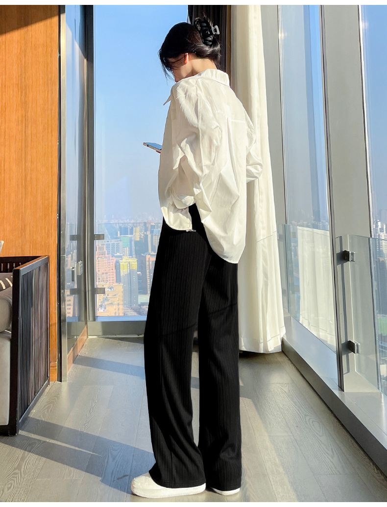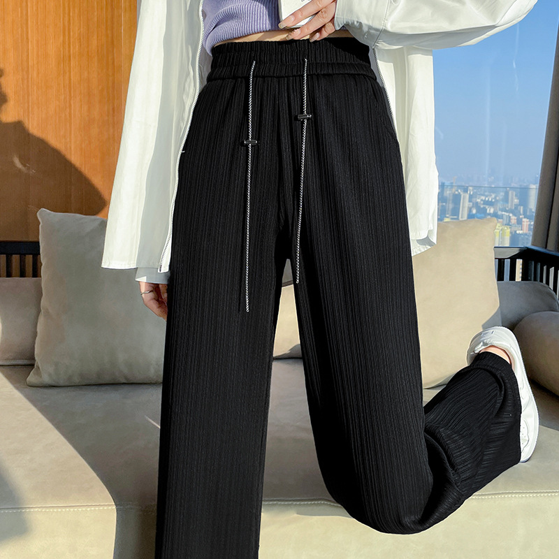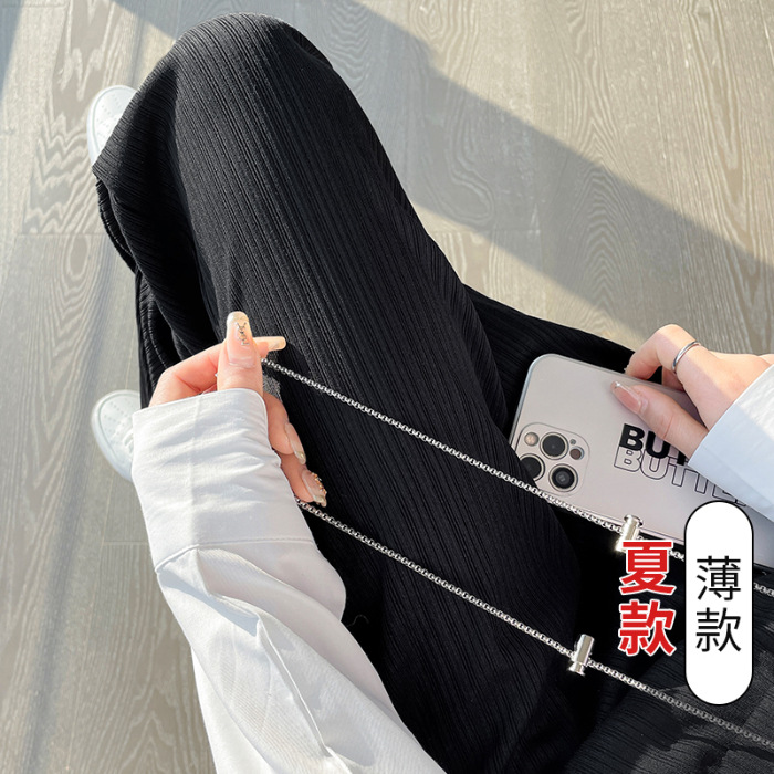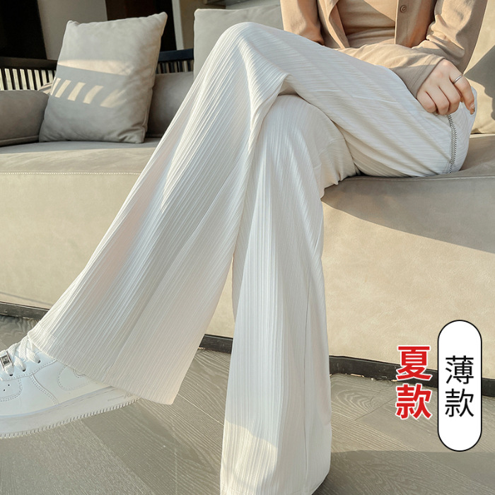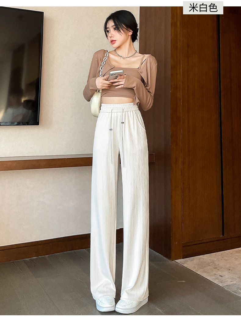 早秋新款白色冰丝阔腿裤女高腰显腿长垂感休闲长裤夏季薄款直筒裤