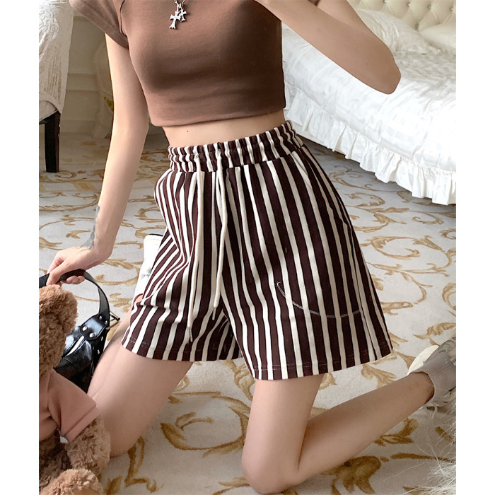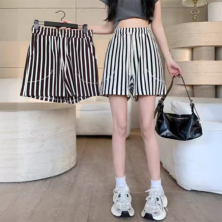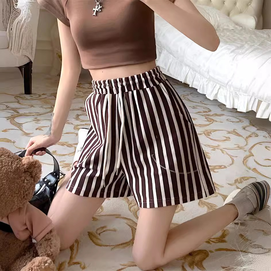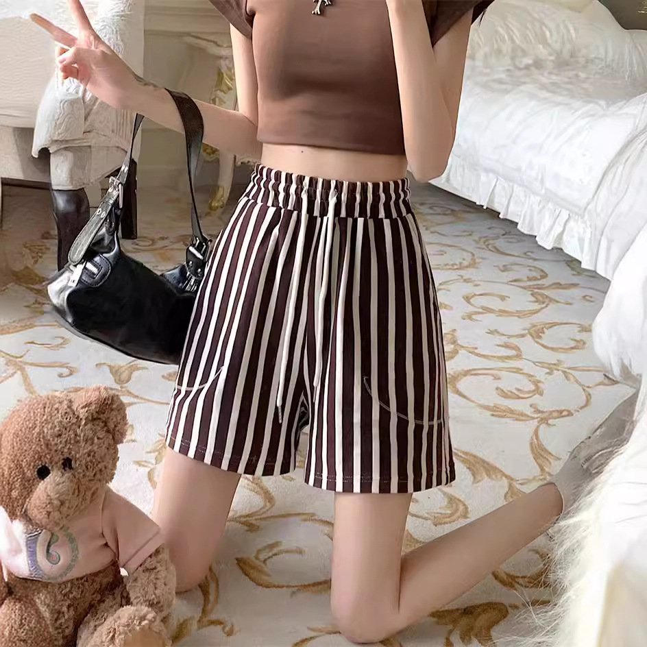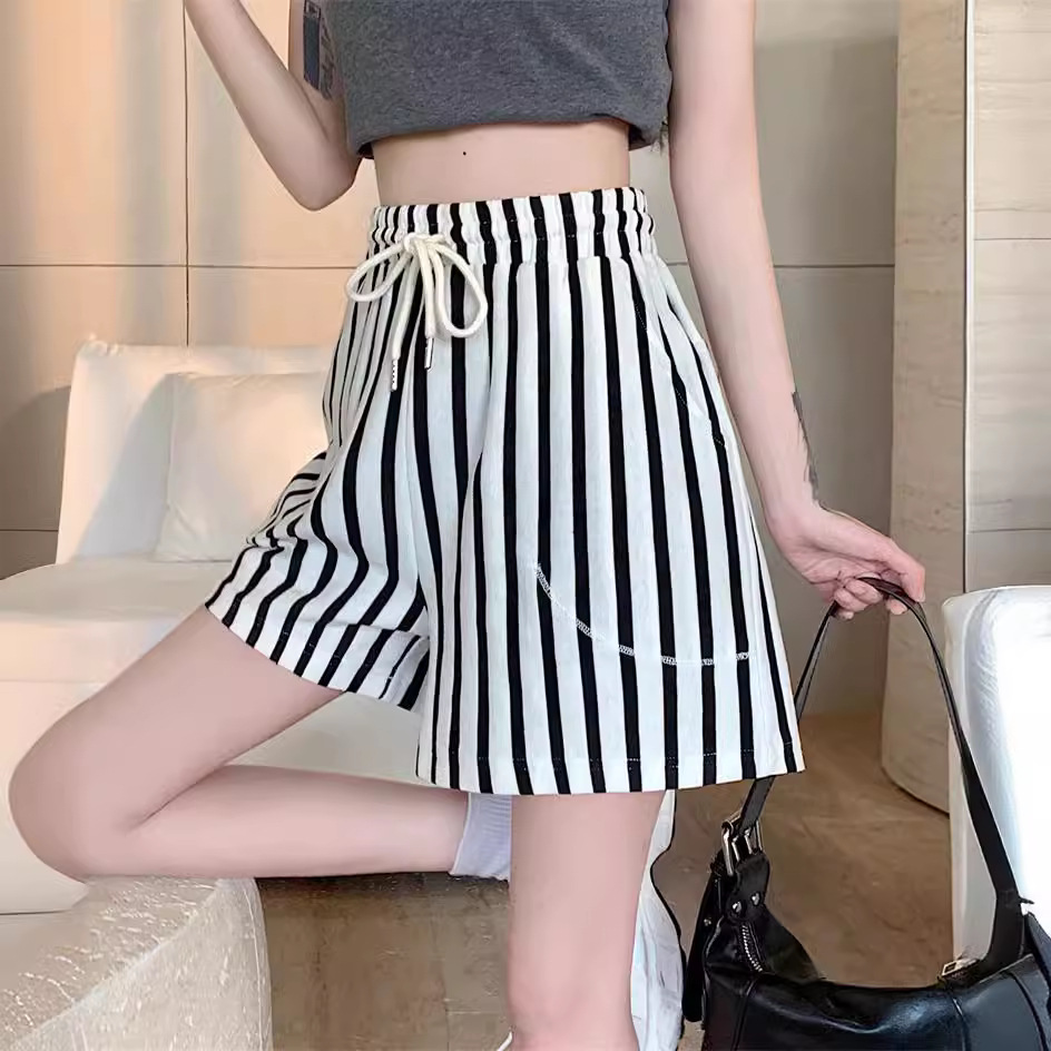 韩系宽松百搭休闲裤女夏季小个子高腰松紧抽绳肌理感阔腿直筒短裤