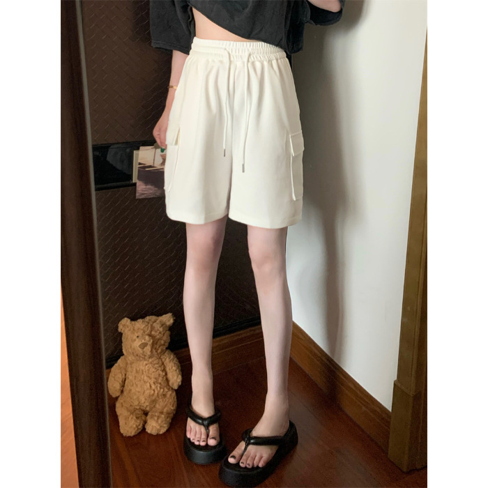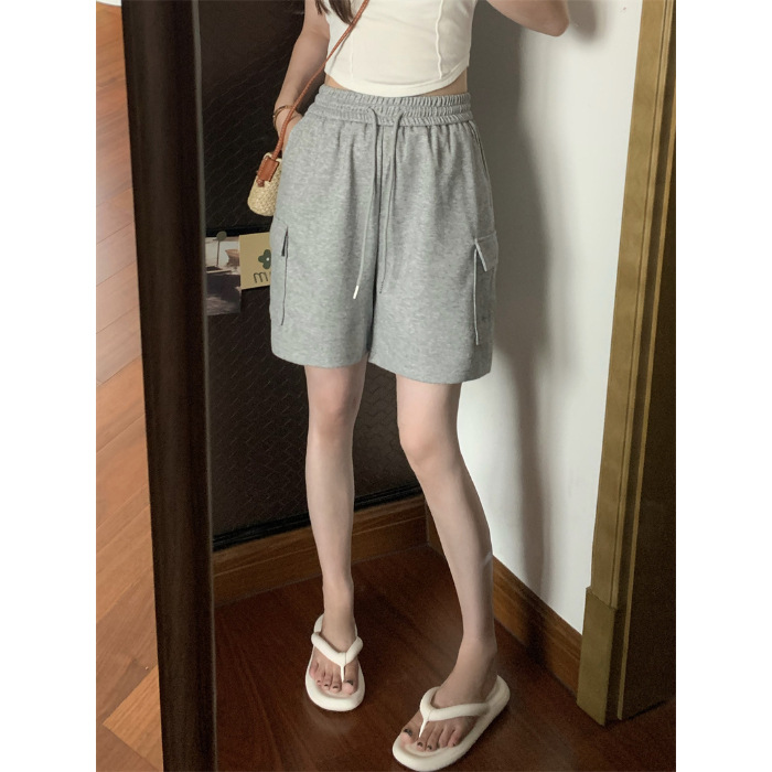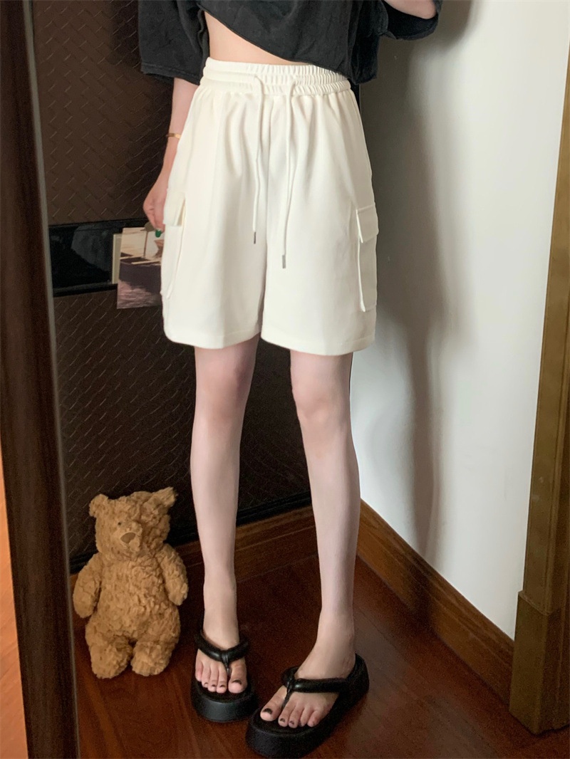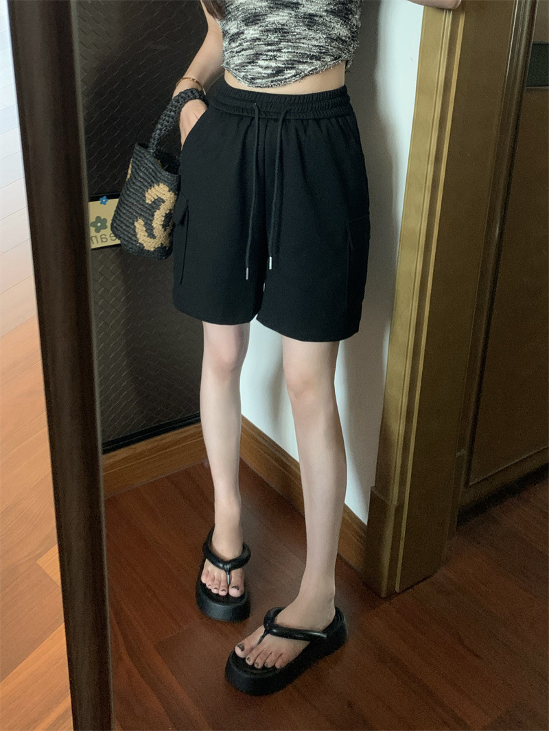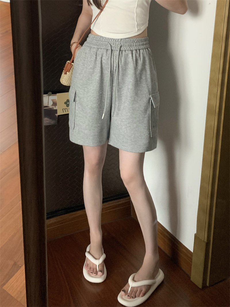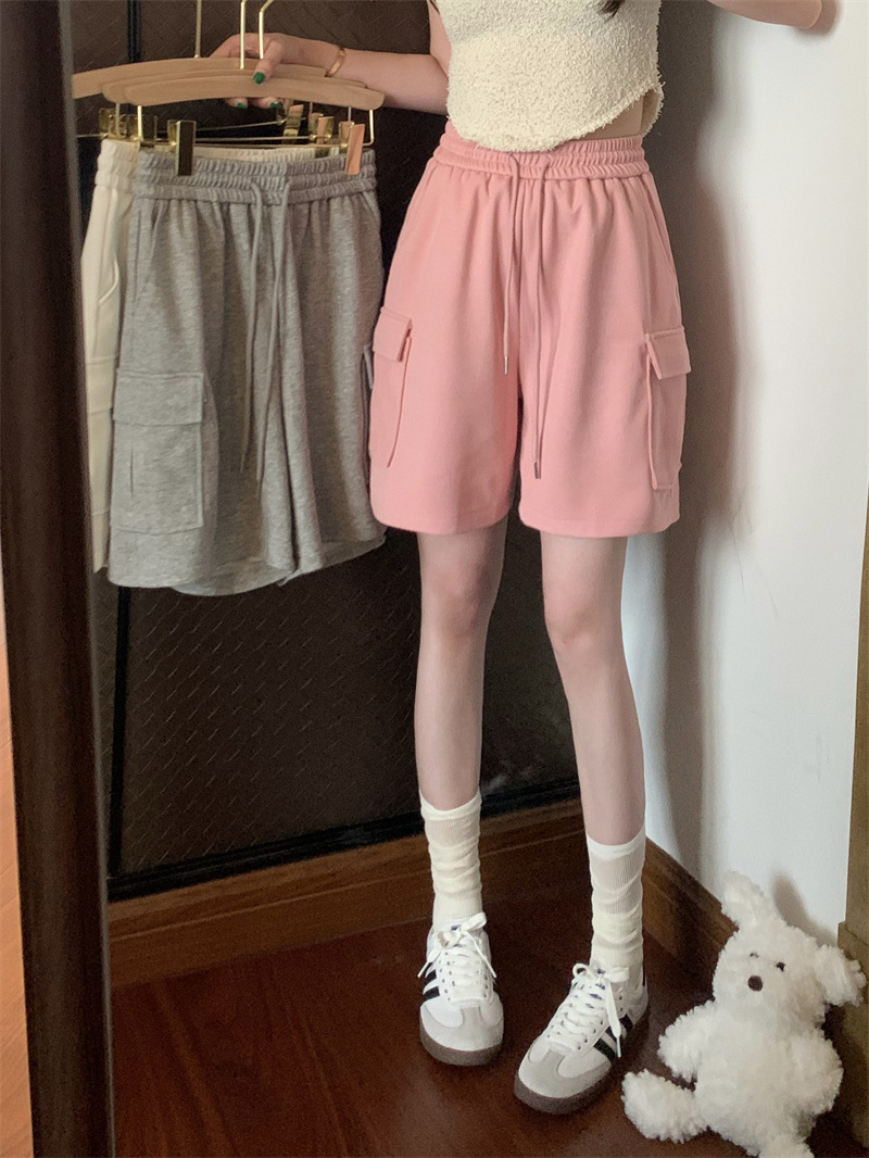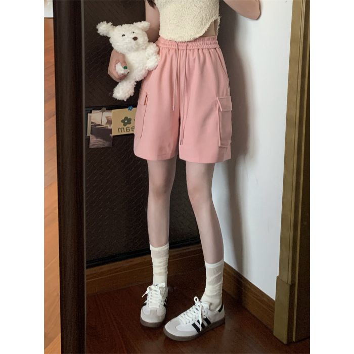 粉色休闲运动裤女夏季高腰显瘦直筒阔腿裤小个子宽松松紧腰短裤子