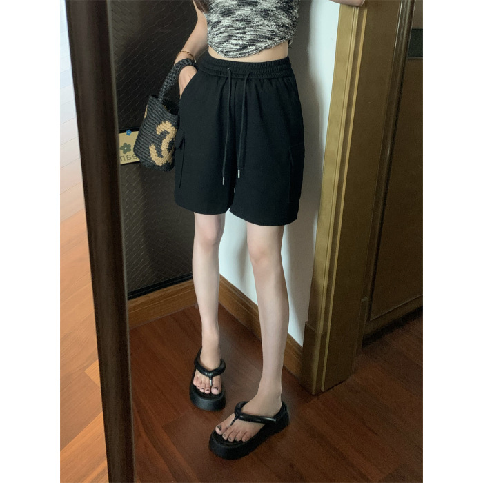 夏季新款美式工装裤女高腰抽绳束脚裤显廋垂落感运动阔腿长裤