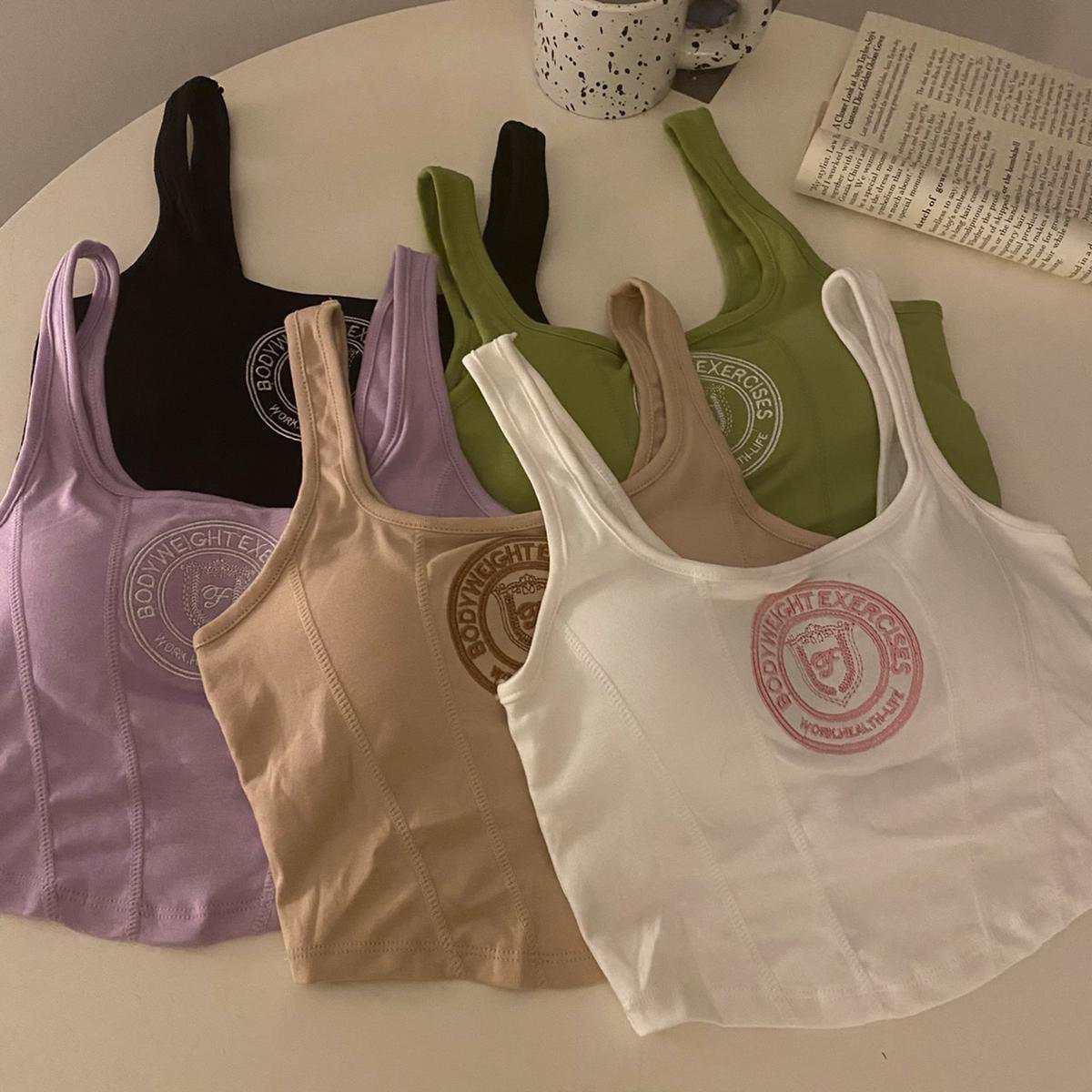 夏季小众性感辣妹纯欲风修身显身材外穿带胸垫短款吊带小背心