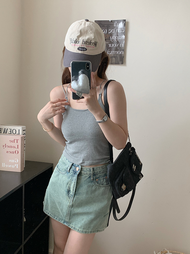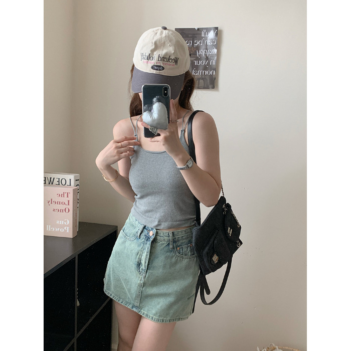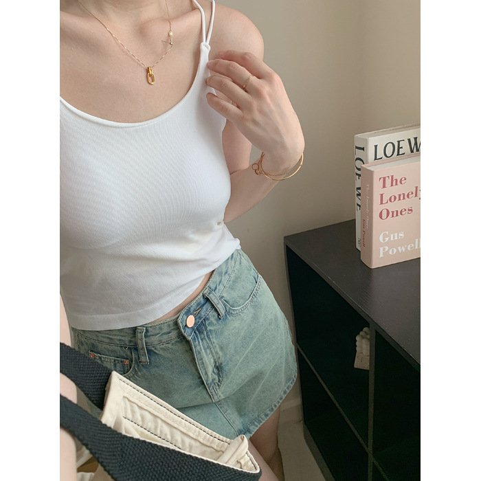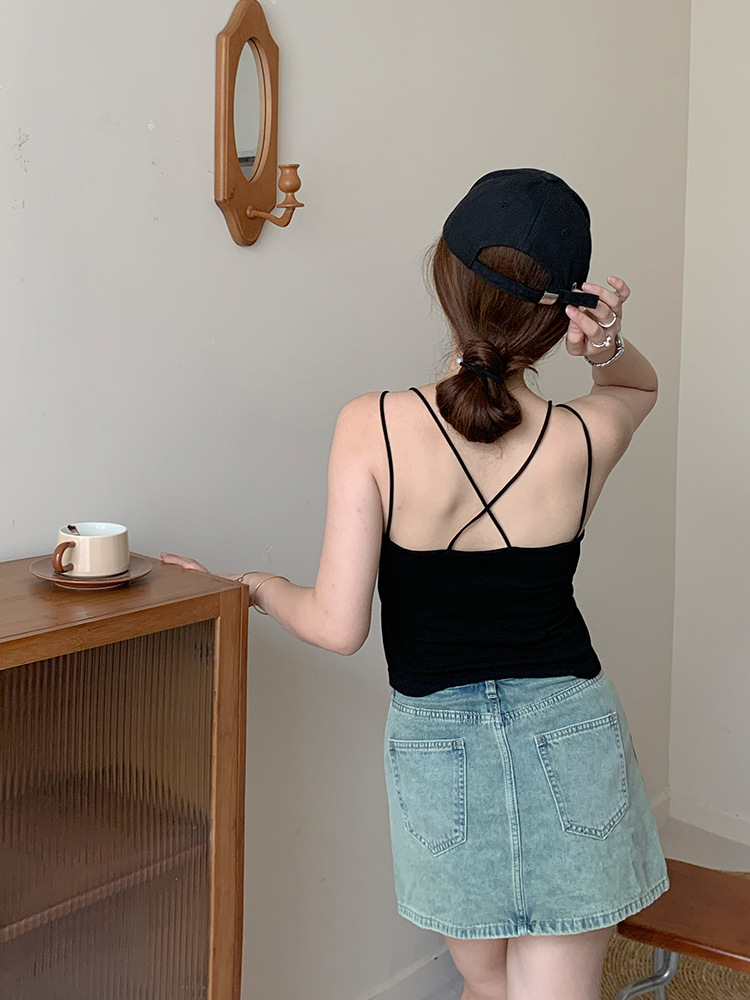 辣妹美背吊带女带胸垫可外穿运动背心夏季新款抹胸防走光短款上衣