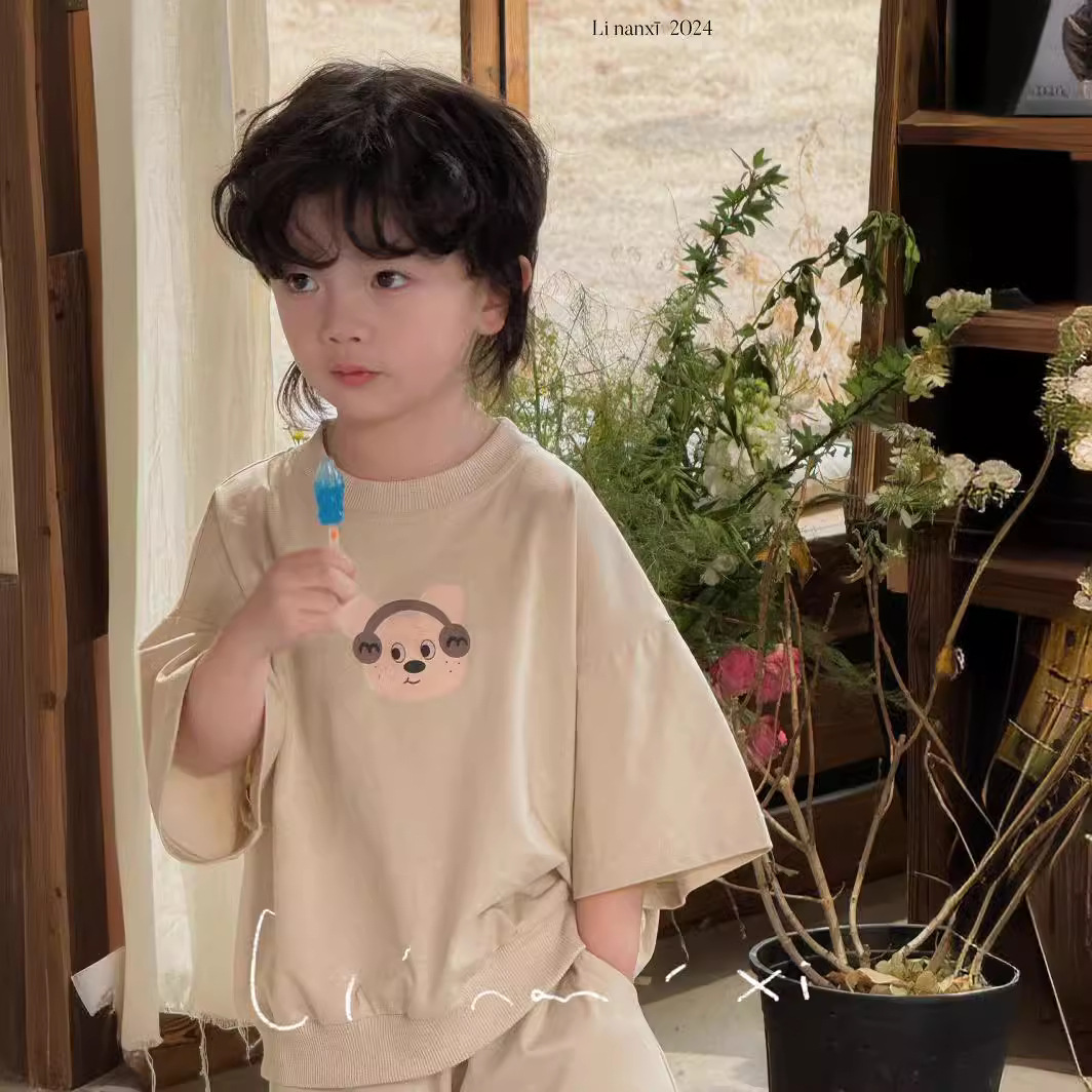 24夏新款男童套装儿童韩版男女童两件套3-8岁宝宝短袖短裤套装