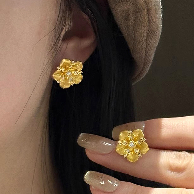 小红书爆款拉丝百合花耳钉女2025新款时尚轻奢微镶小金花复古耳饰