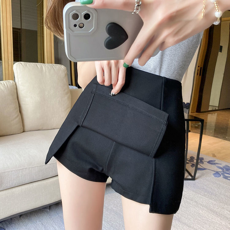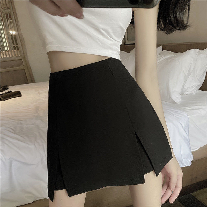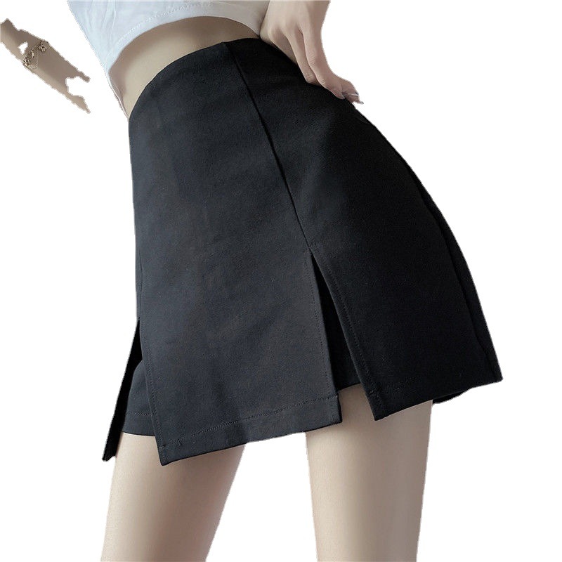 御姐风黑色半身裙裤女高腰包臀开叉A字裙超短裤辣妹性感短裙夏季