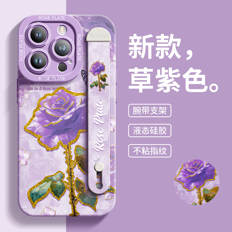 适用于苹果16手机壳星空花翼玫瑰散热全包iPhone13Pro腕带支架液