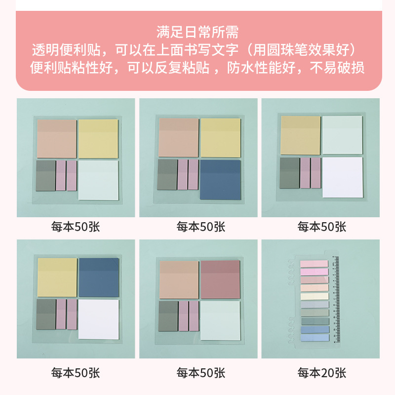 学生组合便利贴便签ins彩色索引贴创意办公n次贴透明留言贴