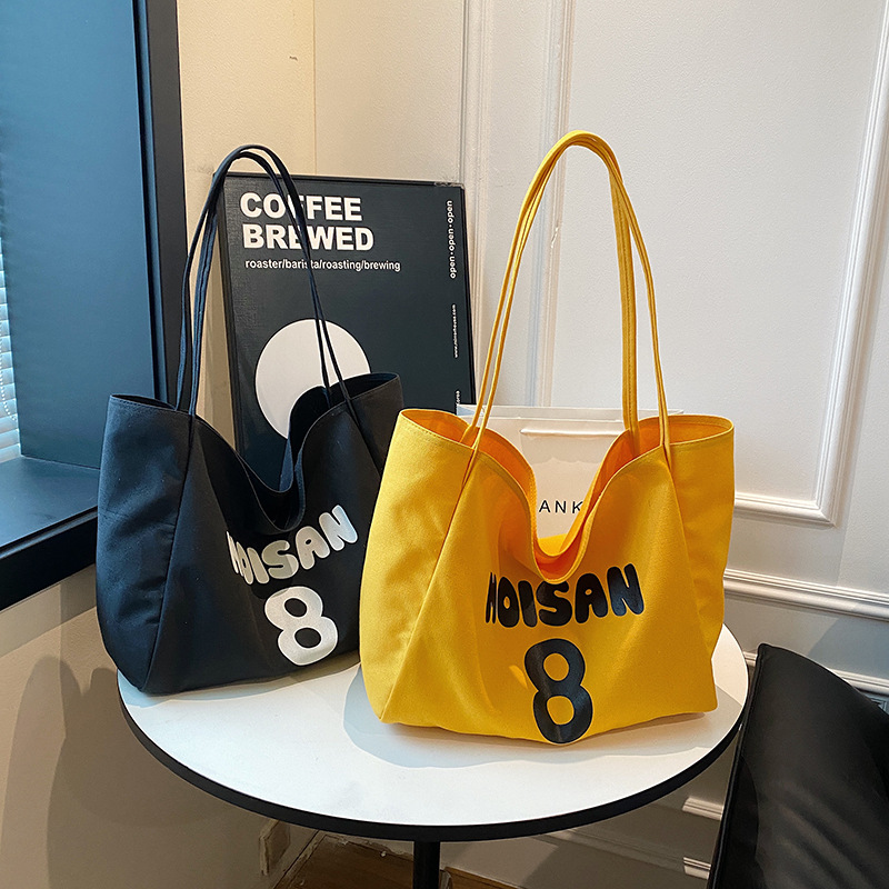 加厚大容量托特包韩版慵懒风单肩帆布包大红色简约字母学生帆布袋