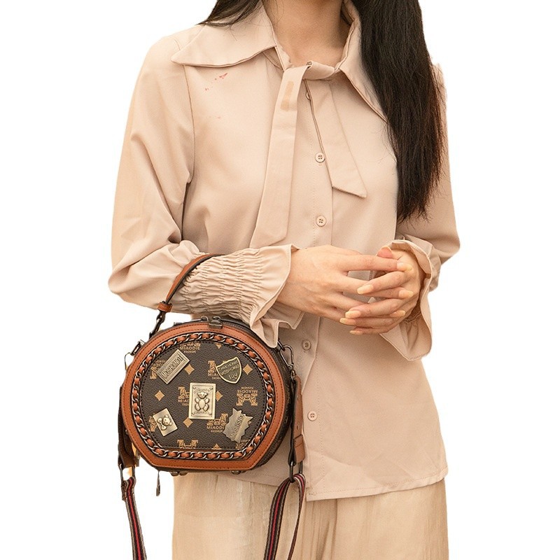 包包女包新款潮斜跨包高级手提时尚单肩包小众轻奢印花小圆包