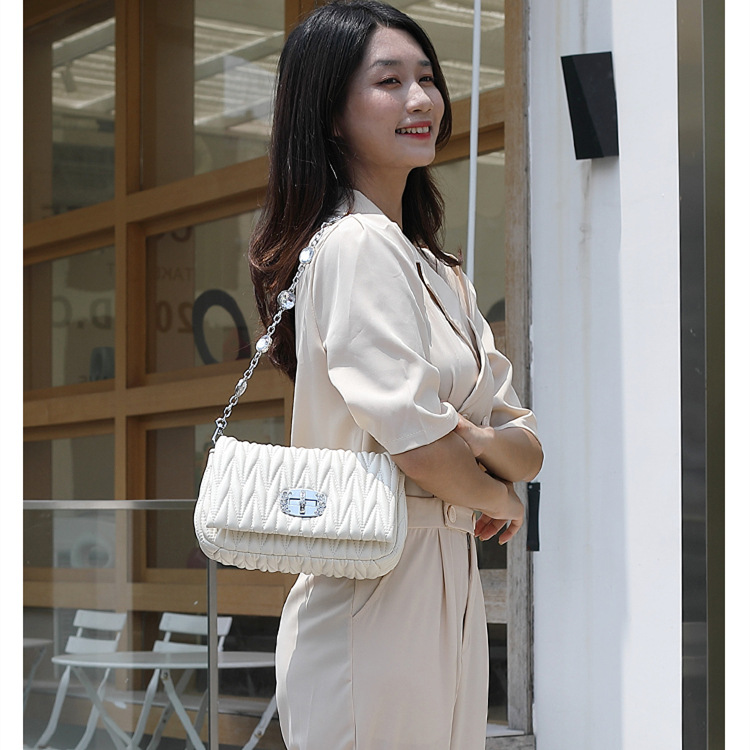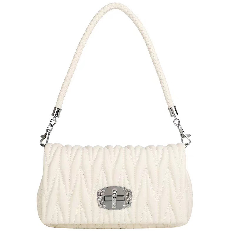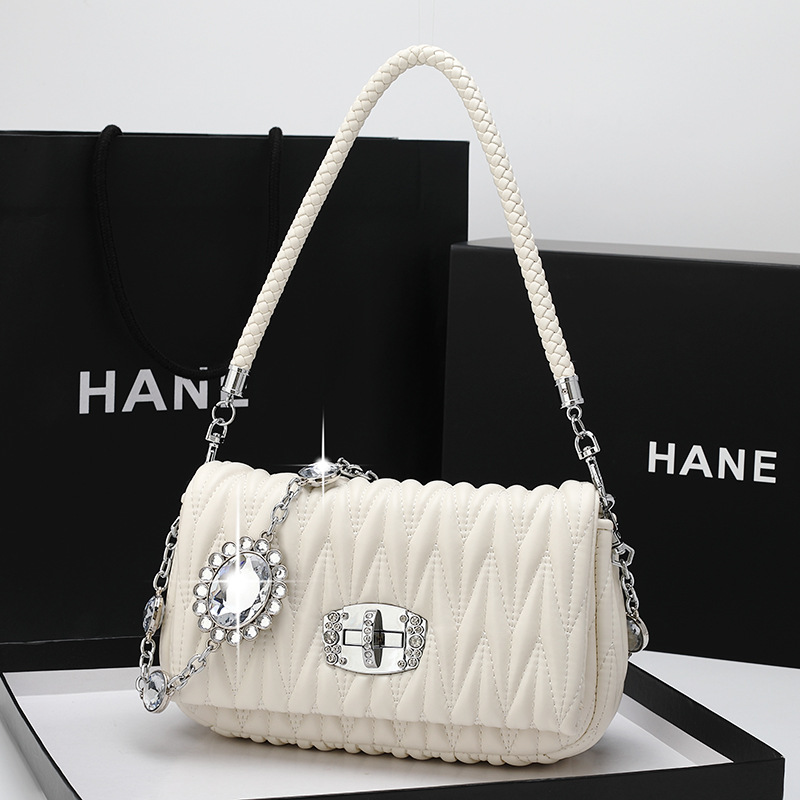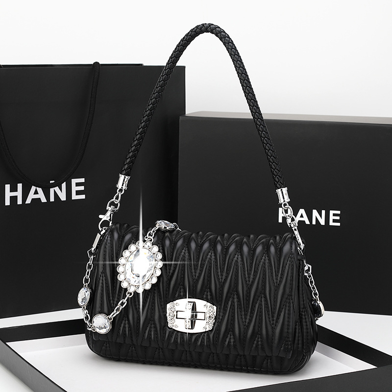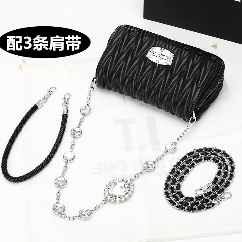 新款真皮褶皱包潮宝石高质感单肩斜挎包时尚网红水钻链条包女