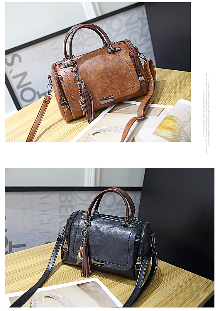 跨境女包新款波士顿枕头包流苏气质手提包大容量单肩包通勤包
