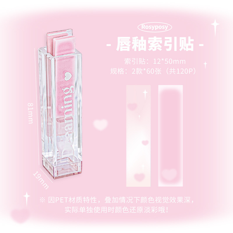 RosyPosy创意唇釉索引贴 渐变色腮红N次贴分类标记贴pet黏性贴纸