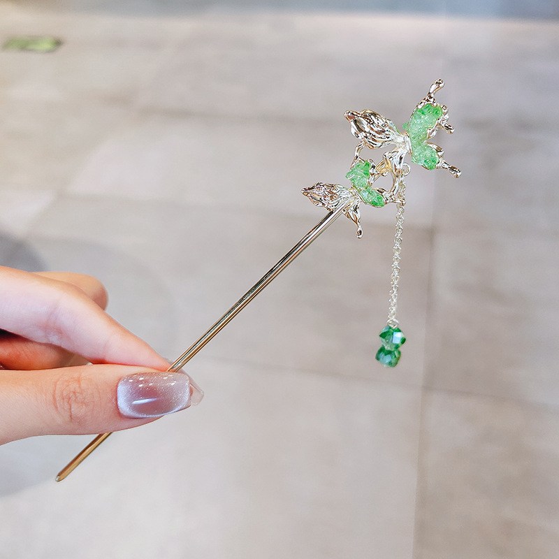 新中式古风流苏蝴蝶发簪女新款现代风后脑勺盘发簪子发钗步摇