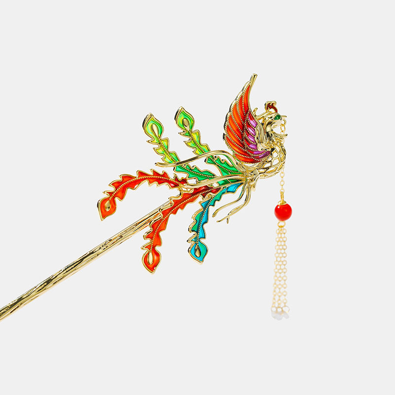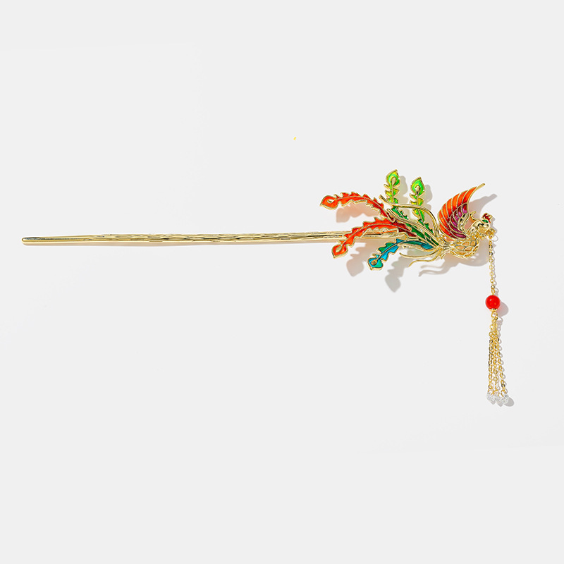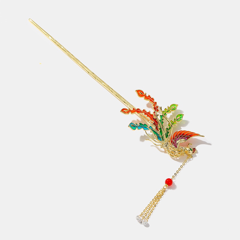复古民族风五彩凤凰发簪国潮新中式气质流苏旗袍汉服盘发簪子发钗
