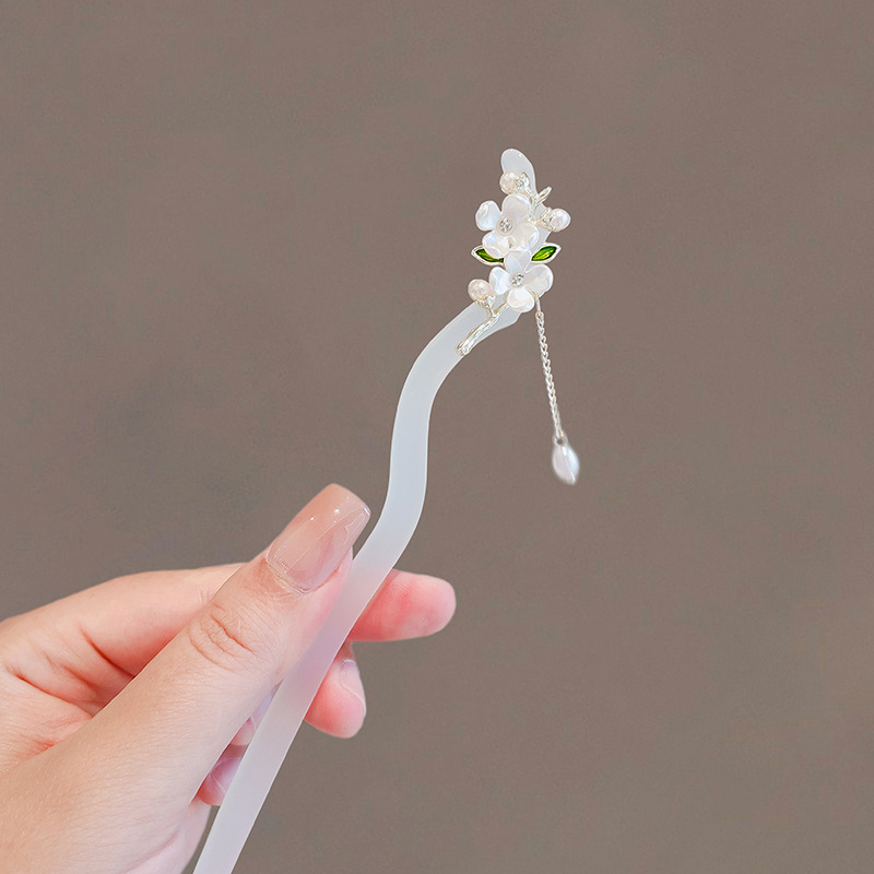 清冷感铃兰花古风发簪高级感步摇流苏簪子汉服简约发钗