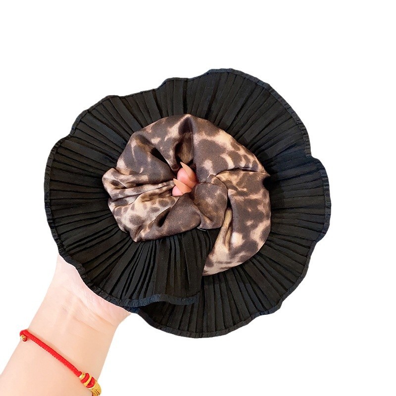 韩系复古时尚高级感新款发饰花色豹纹发绳大肠发圈褶皱黑边头绳女