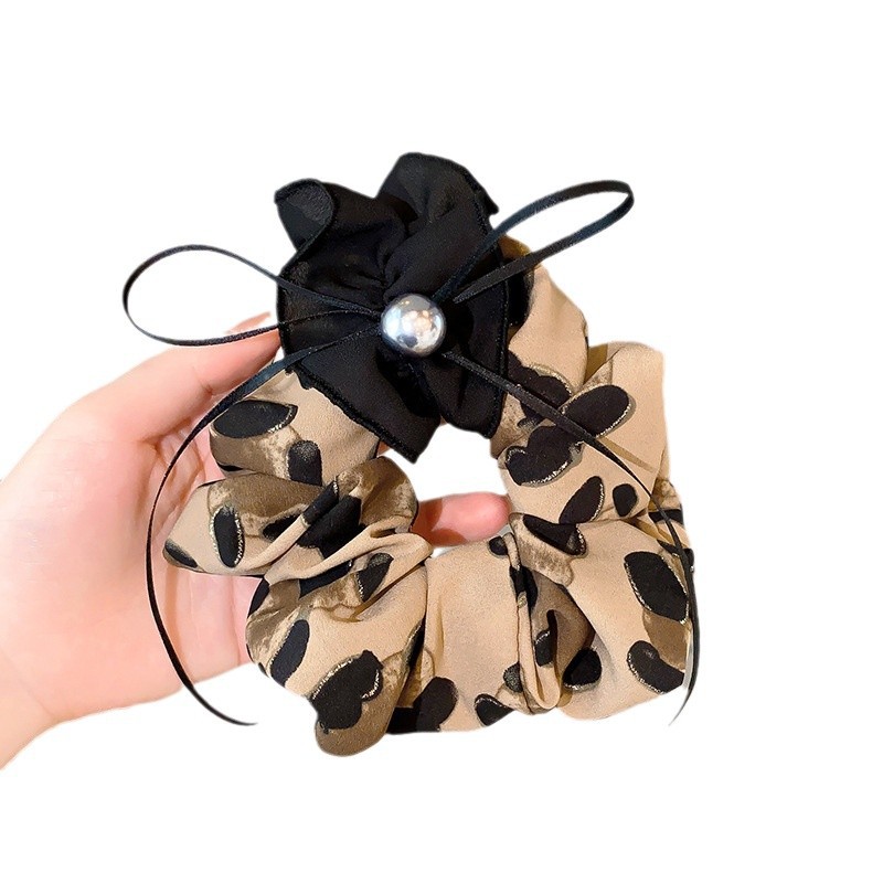 韩系缎面高级感蝴蝶结珍珠大肠发圈豹纹发绳高弹力扎马尾头绳皮筋