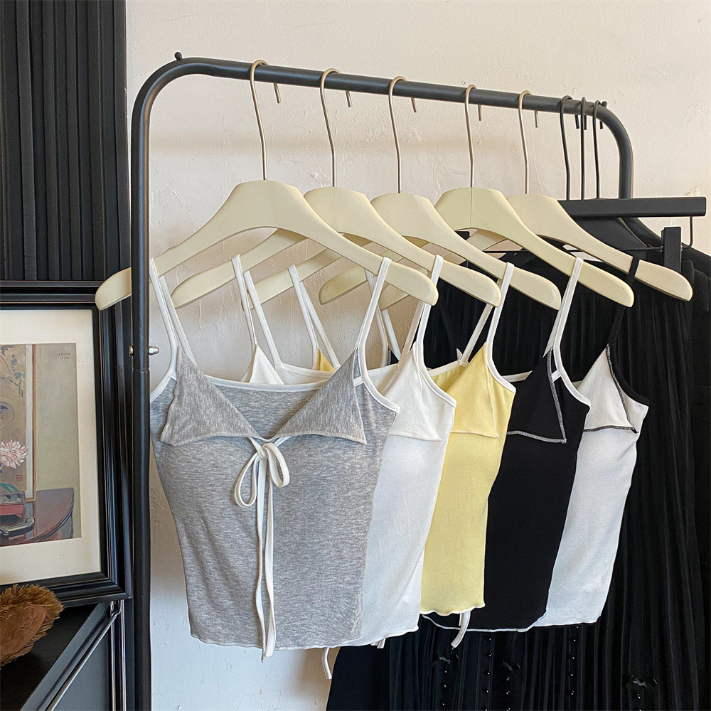 穿色新款上衣蝴蝶结甜辣搭外女背心无袖性感吊带撞打底修身内蝴蝶