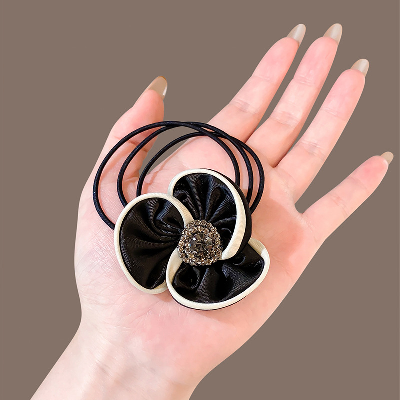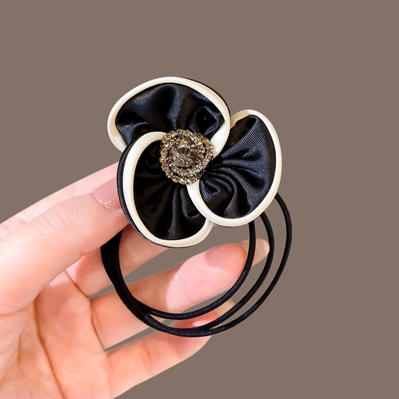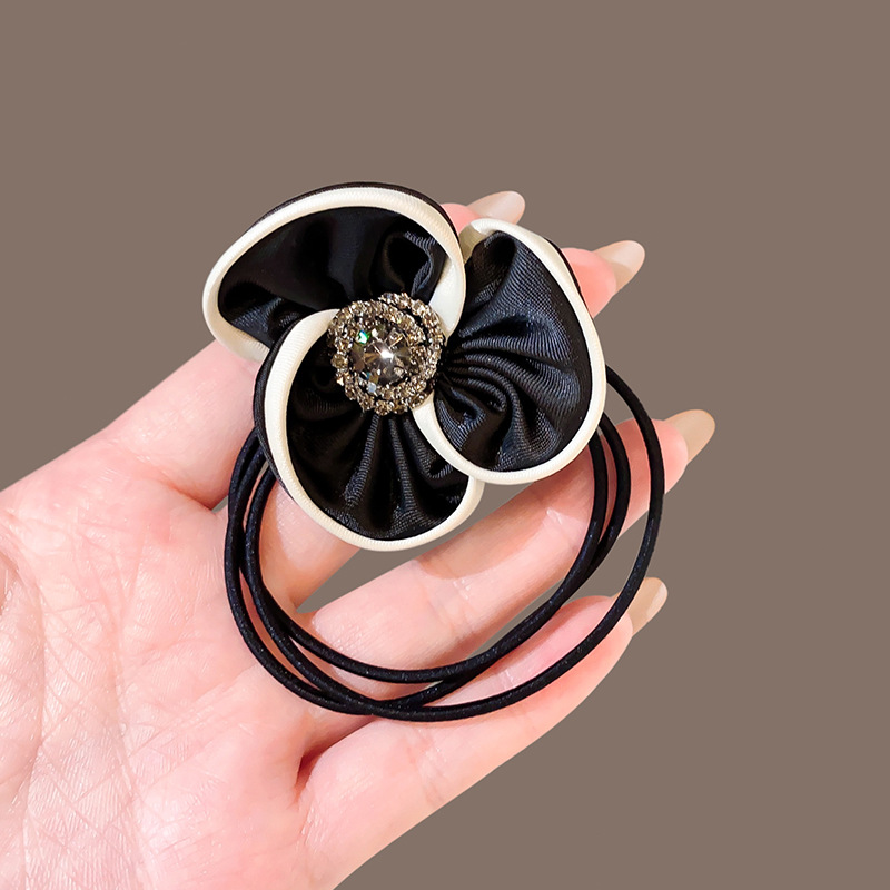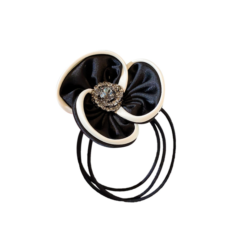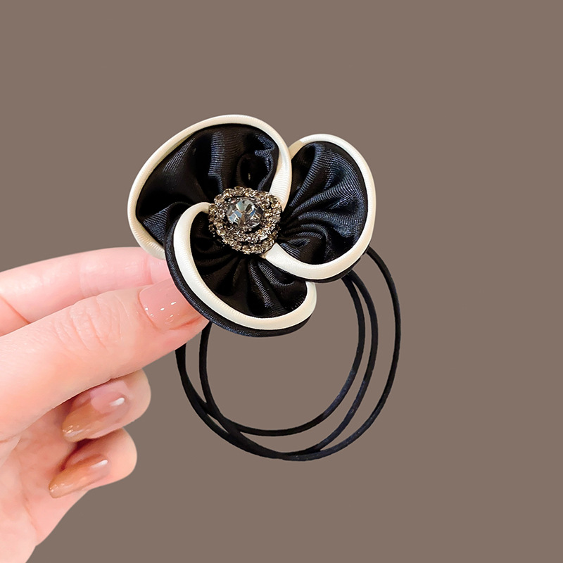 白边山茶花发圈时尚气质水钻发绳多层橡皮筋高弹力扎马尾发饰头绳