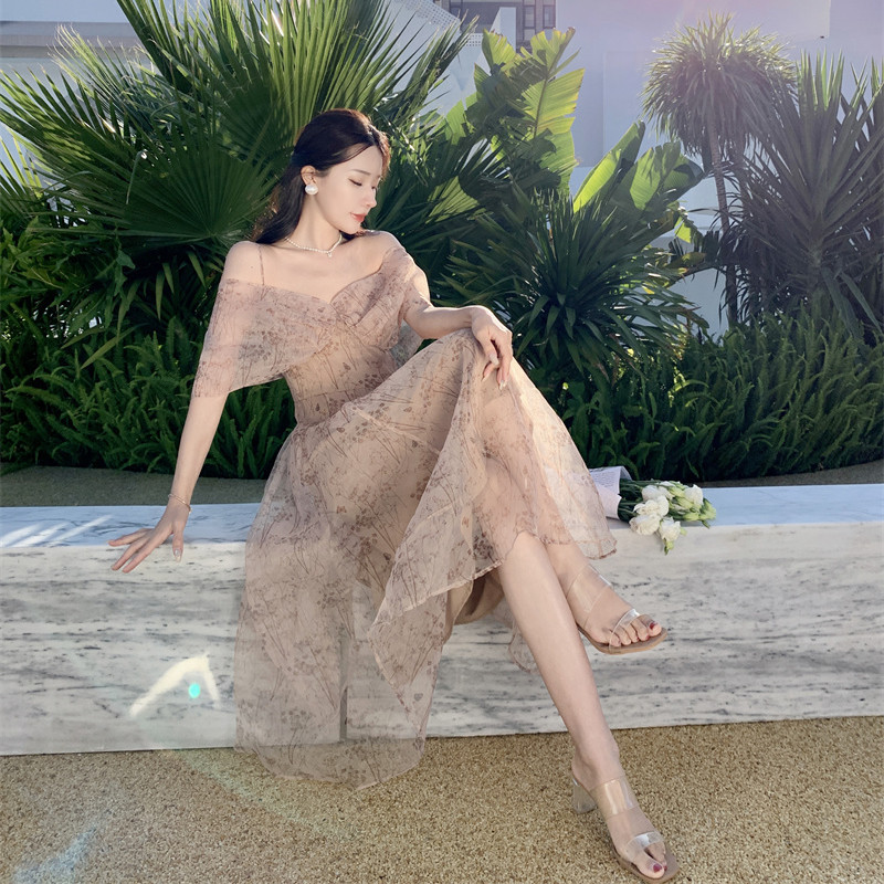实拍椿山絮语时尚高级小众设计感法式复古吊带收腰礼服长连衣裙夏