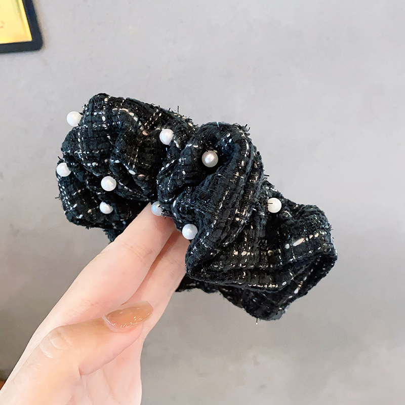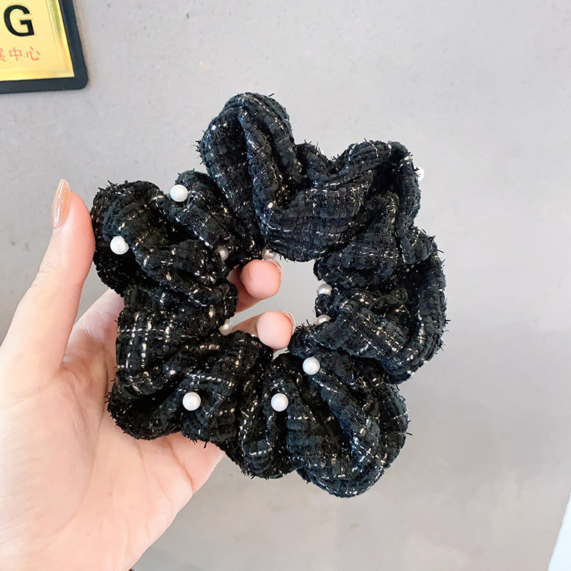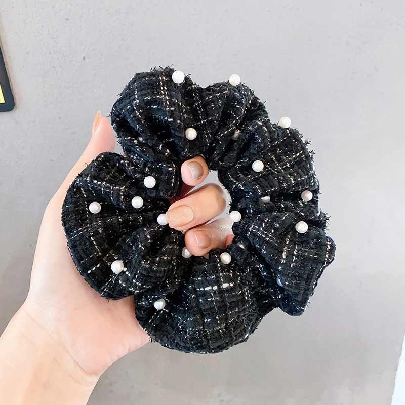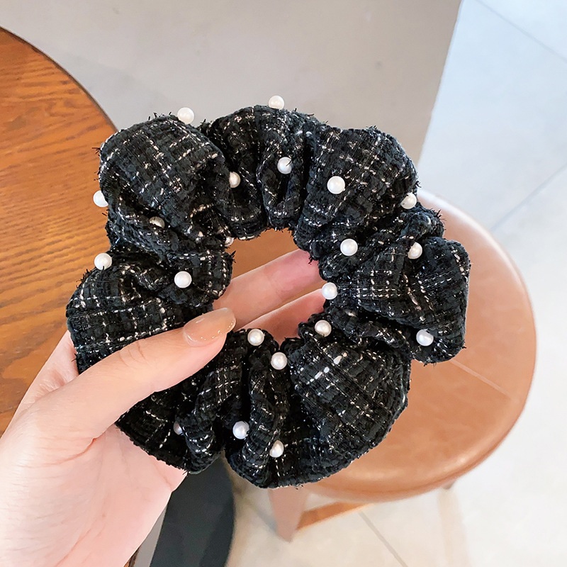 新款秋季小香风发圈法式复古高端千鸟格头绳韩系珍珠大肠发绳