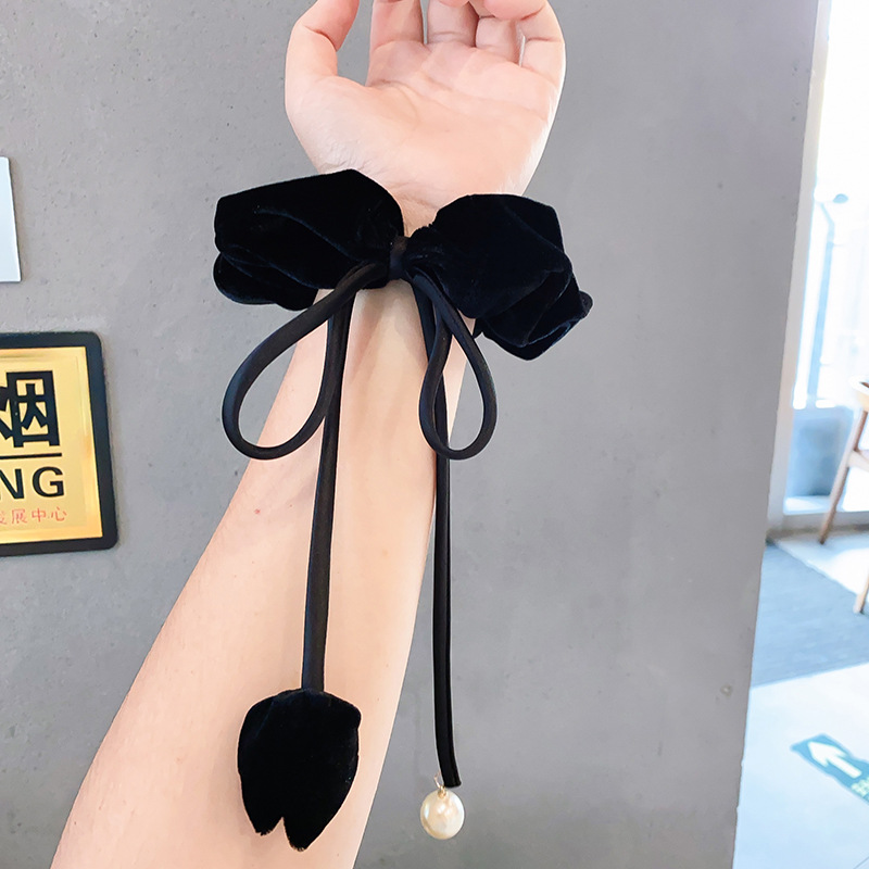 新款韩系丝绒蝴蝶结大肠发圈花苞头绳高级感发绳女低马尾发饰