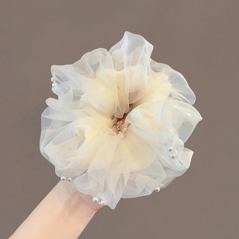 头绳女年夏季新款网纱珍珠发绳女扎头发气质马尾大肠发圈大号