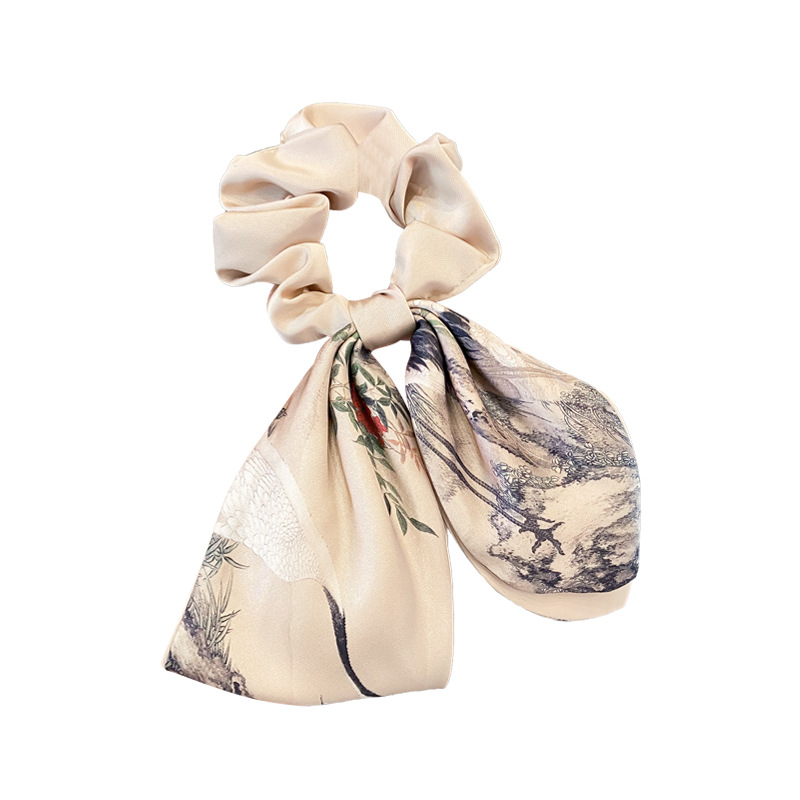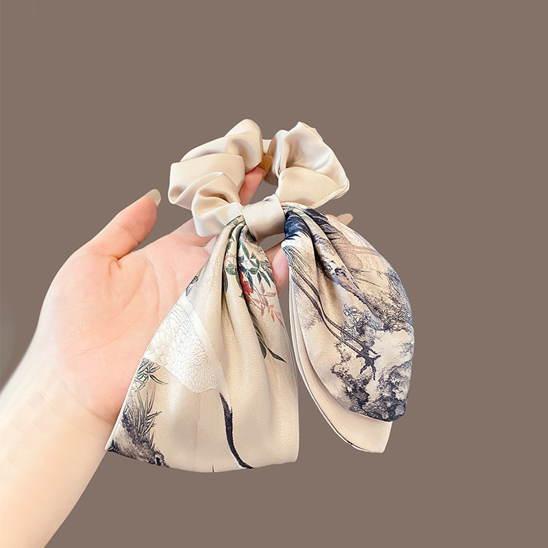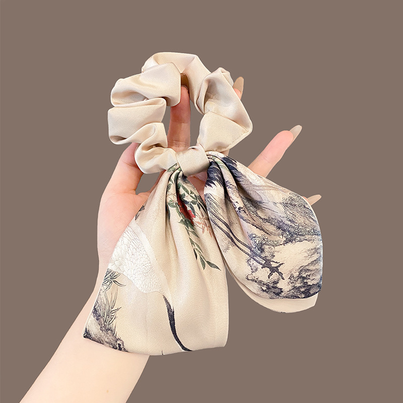 新中式水墨画彩绘蝴蝶结飘带大肠发圈女高级感后脑勺低扎马尾发绳