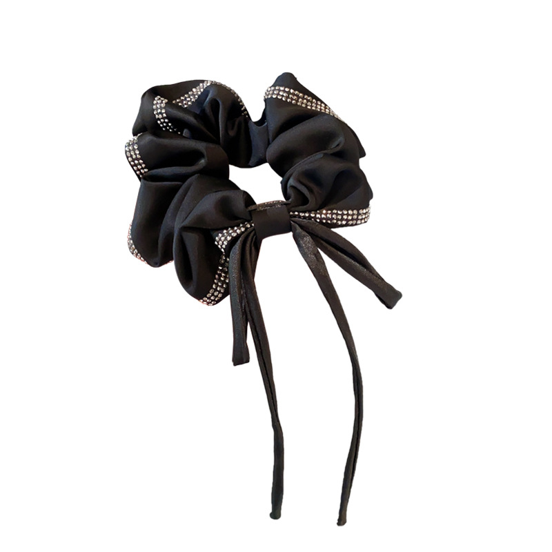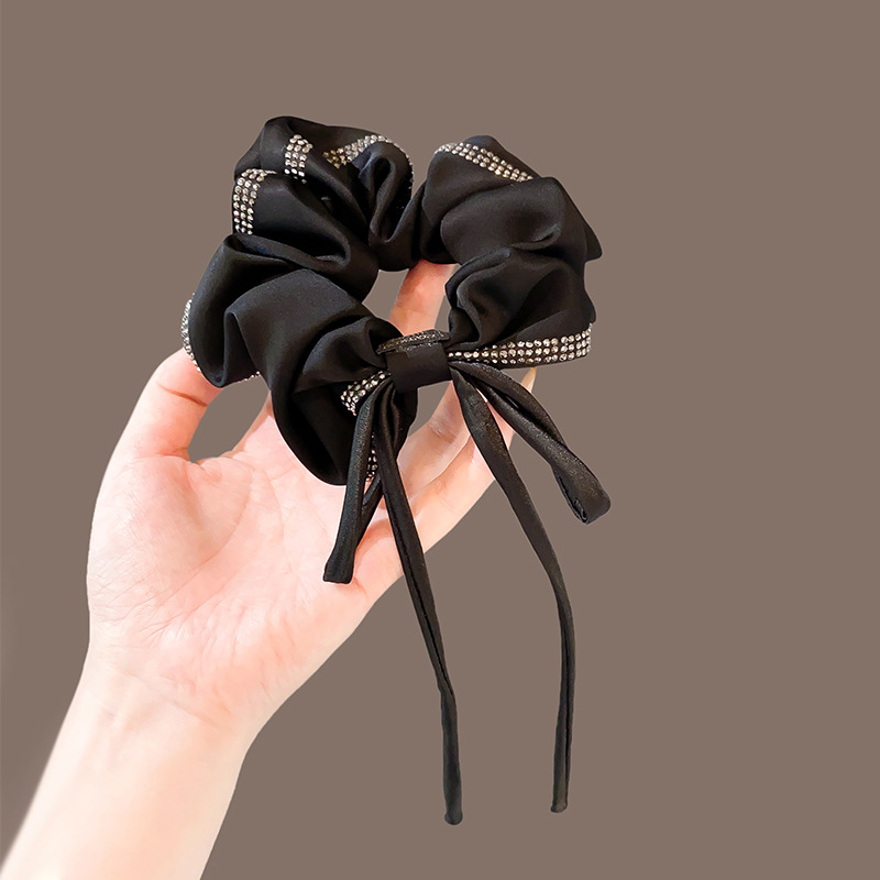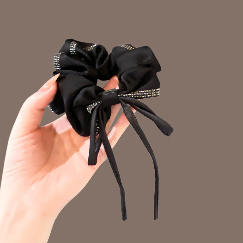 法式高级感缎面蝴蝶结飘带大肠发圈精致水钻扎马尾头绳发饰橡皮筋