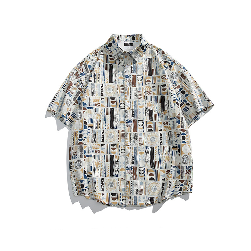 夏季新款莫吉托系列花衬衫男士复古印花休闲短袖百搭衬衣男