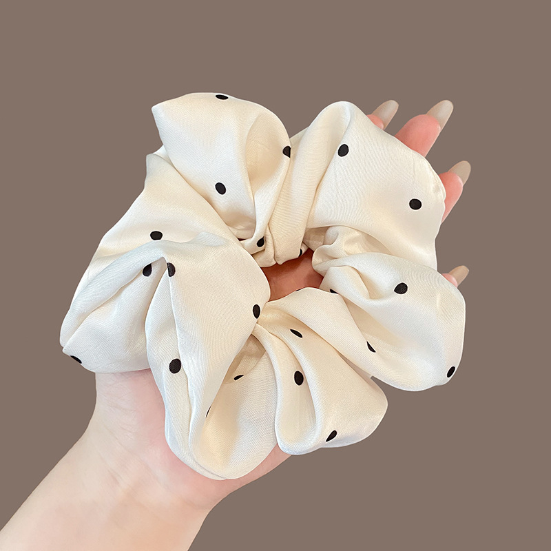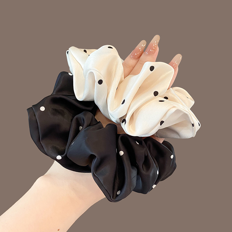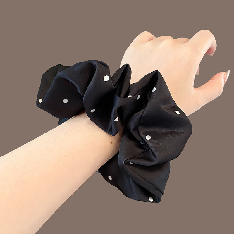 法式缎面波点大肠发圈女高级感扎头发绳高弹力橡皮筋丸子头绳发饰