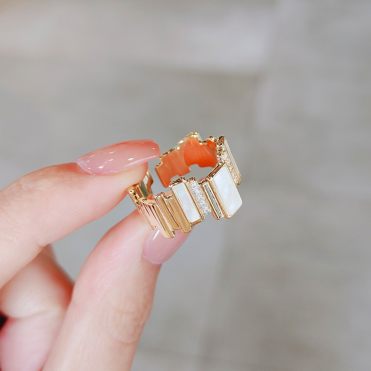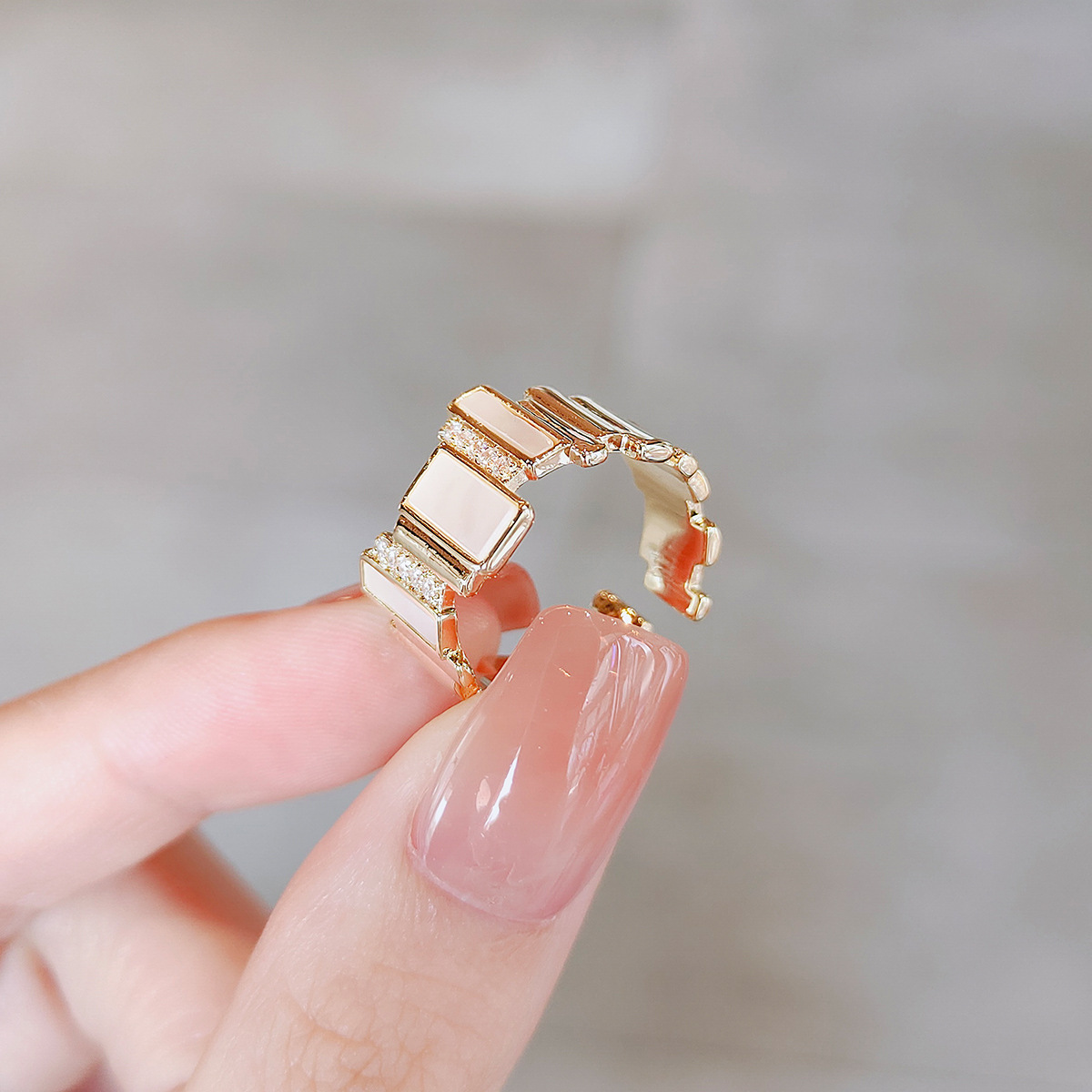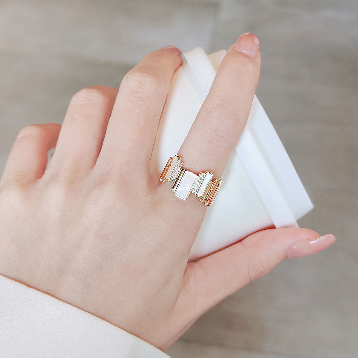 新款几何设计感方形戒指女ins潮高级感贝壳开口可调节食指戒