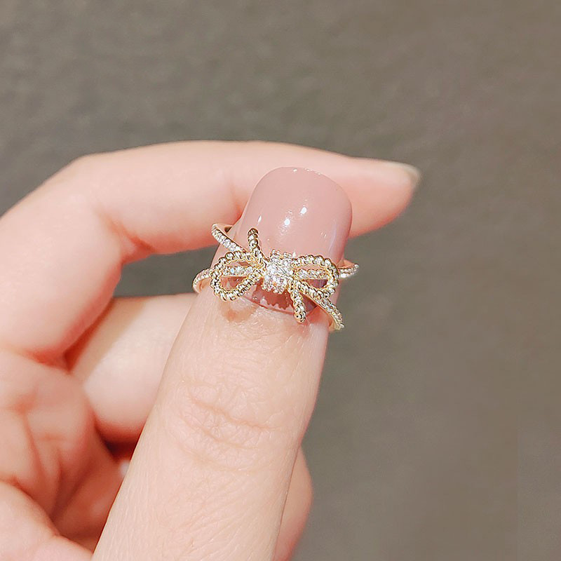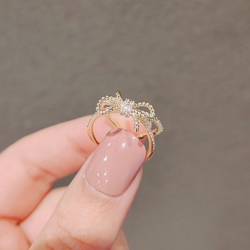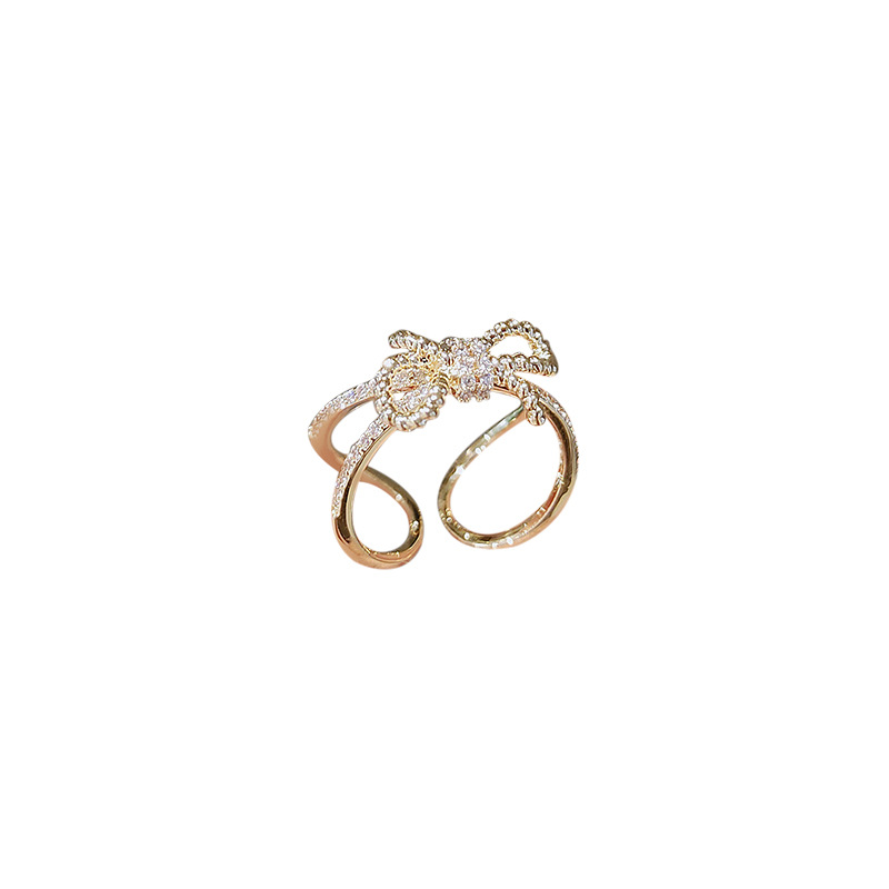 日系新品蝴蝶结戒指轻奢小众甜美精致少年网红时尚个性食指戒开口