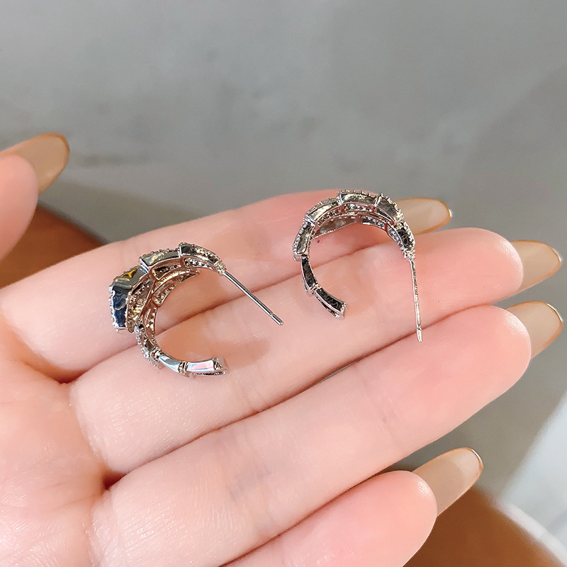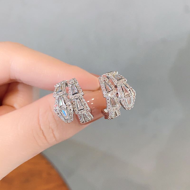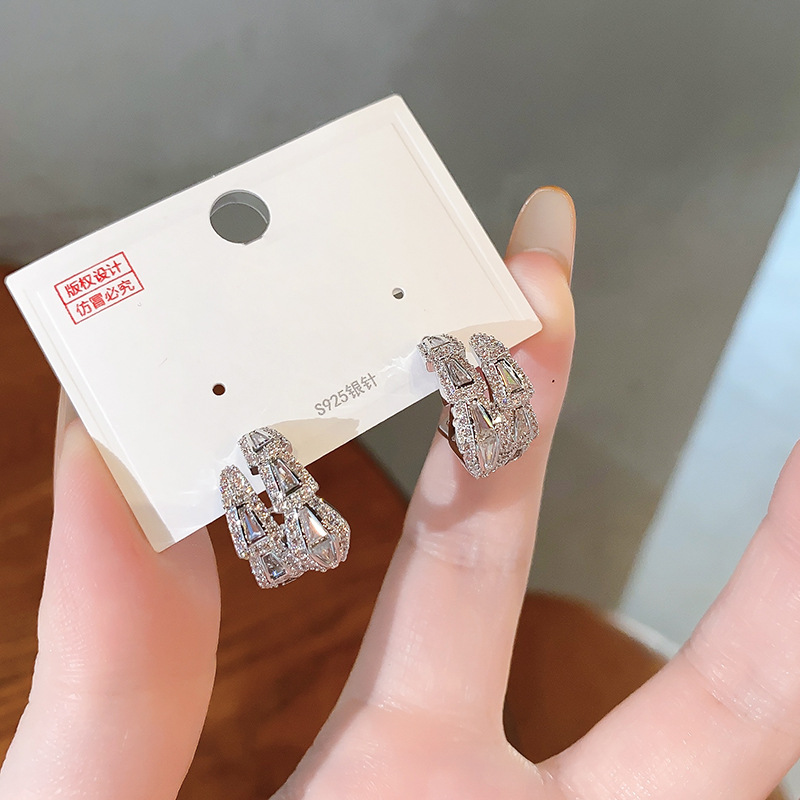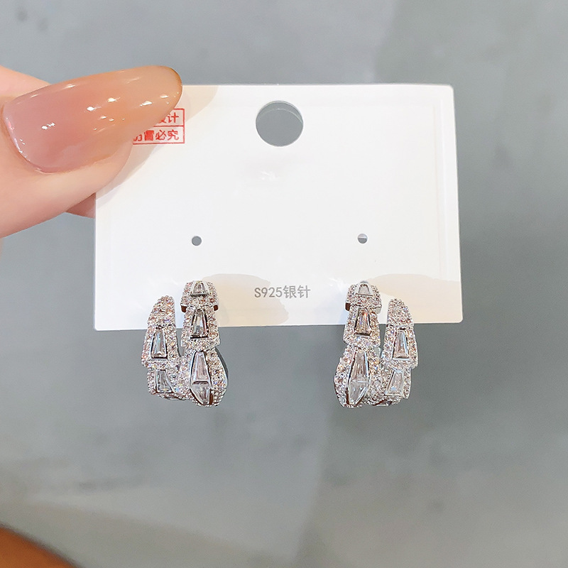 新款时尚轻奢银蟒蛇耳饰女超闪满钻蛇形银针耳环个性耳坠配饰