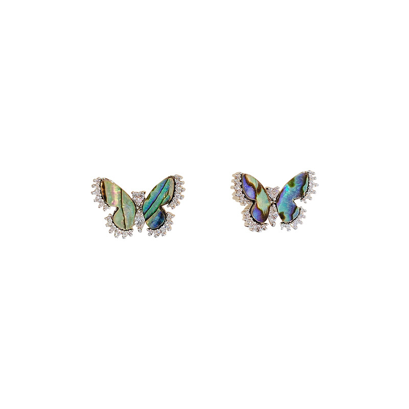 鲍鱼贝幻彩蝴蝶耳环新款复古风锆石耳钉高级感耳饰气质时尚