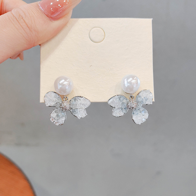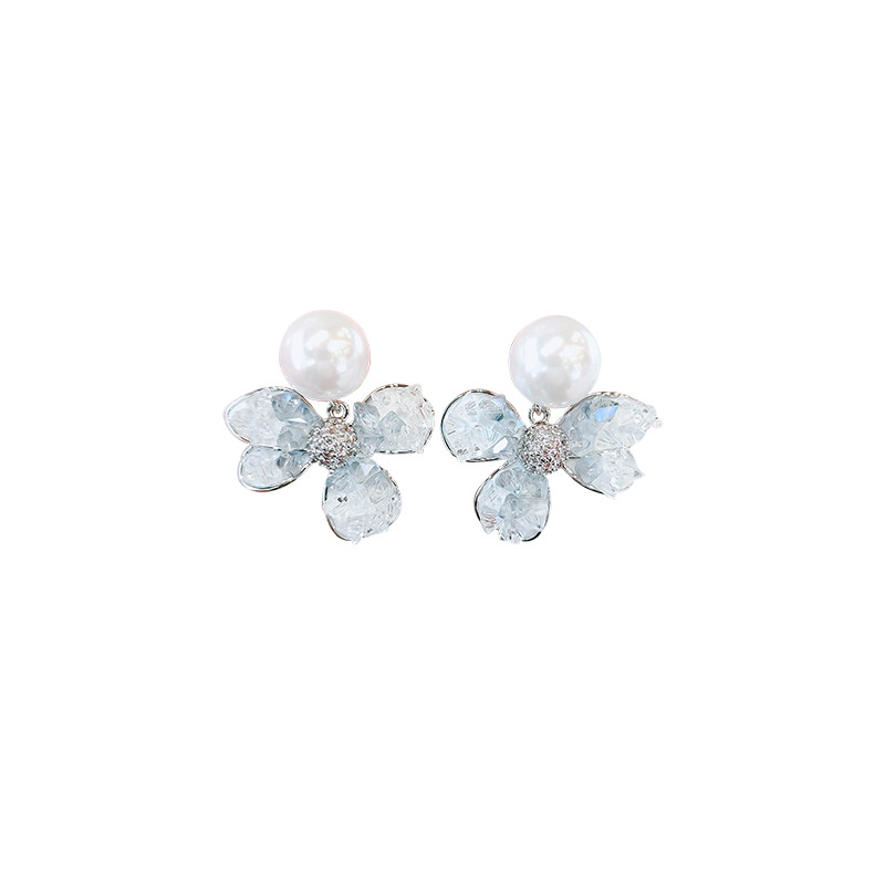 气质时尚珍珠锆石花朵耳钉女小众设计年新款高级感耳钉耳饰